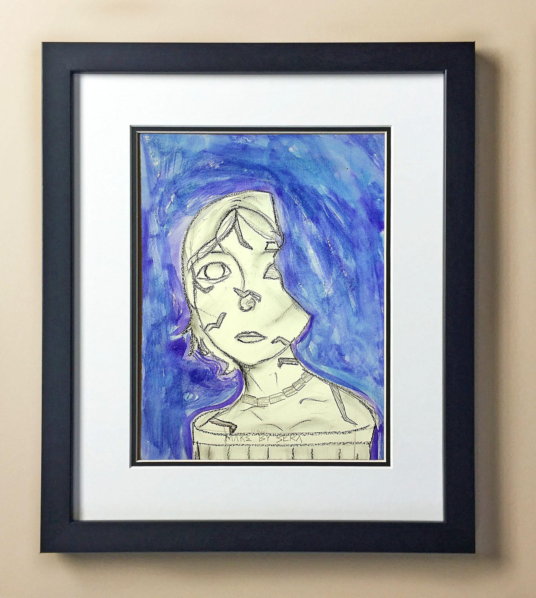 Included with the purchase is the Students Artwork, Frame, double matboard, shatter proof plexiglass, and a ready to hang backerboard with turnbuttons