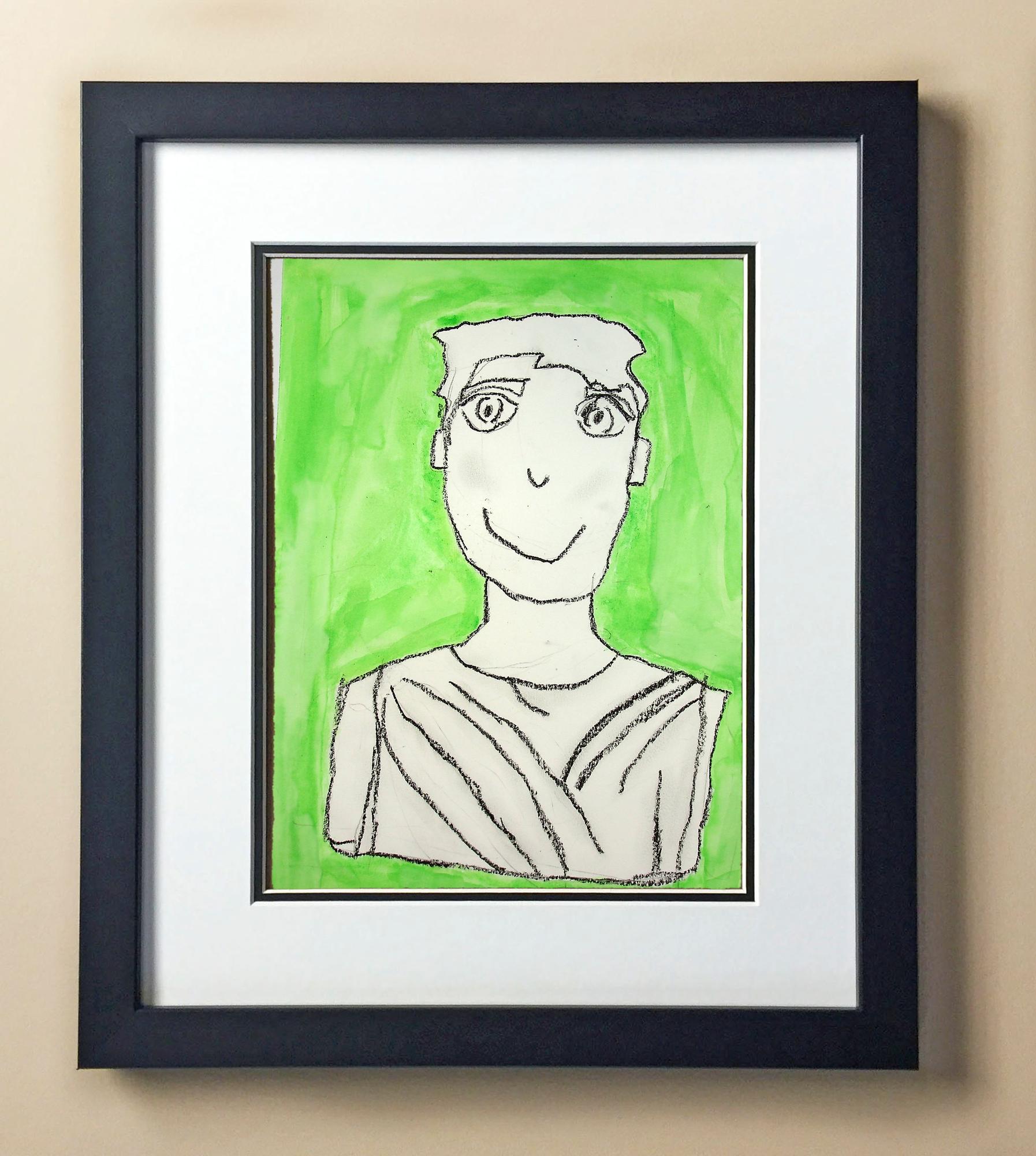 Included with the purchase is the Students Artwork, Frame, double matboard, shatter proof plexiglass, and a ready to hang backerboard with turnbuttons