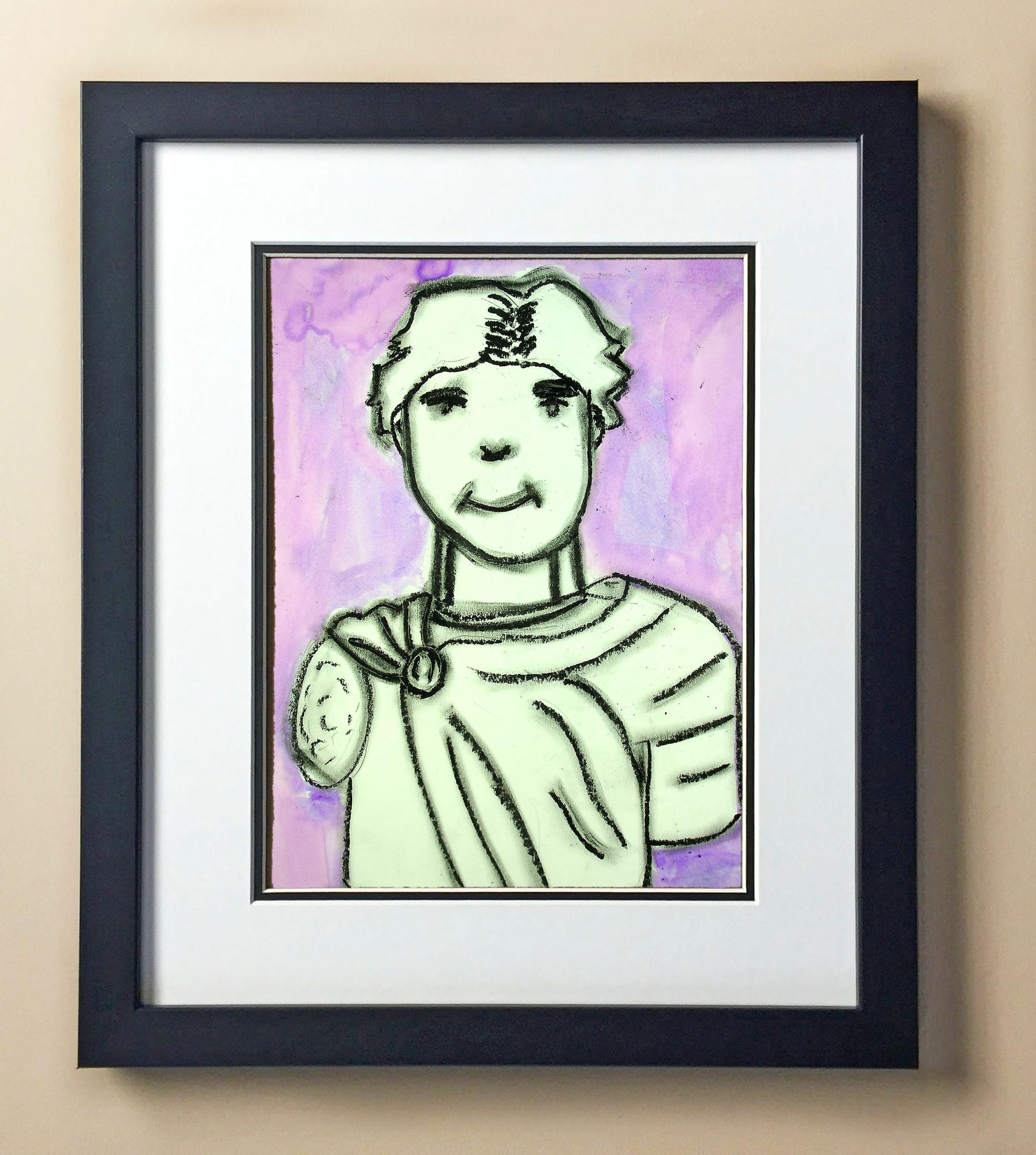 Included with the purchase is the Students Artwork, Frame, double matboard, shatter proof plexiglass, and a ready to hang backerboard with turnbuttons