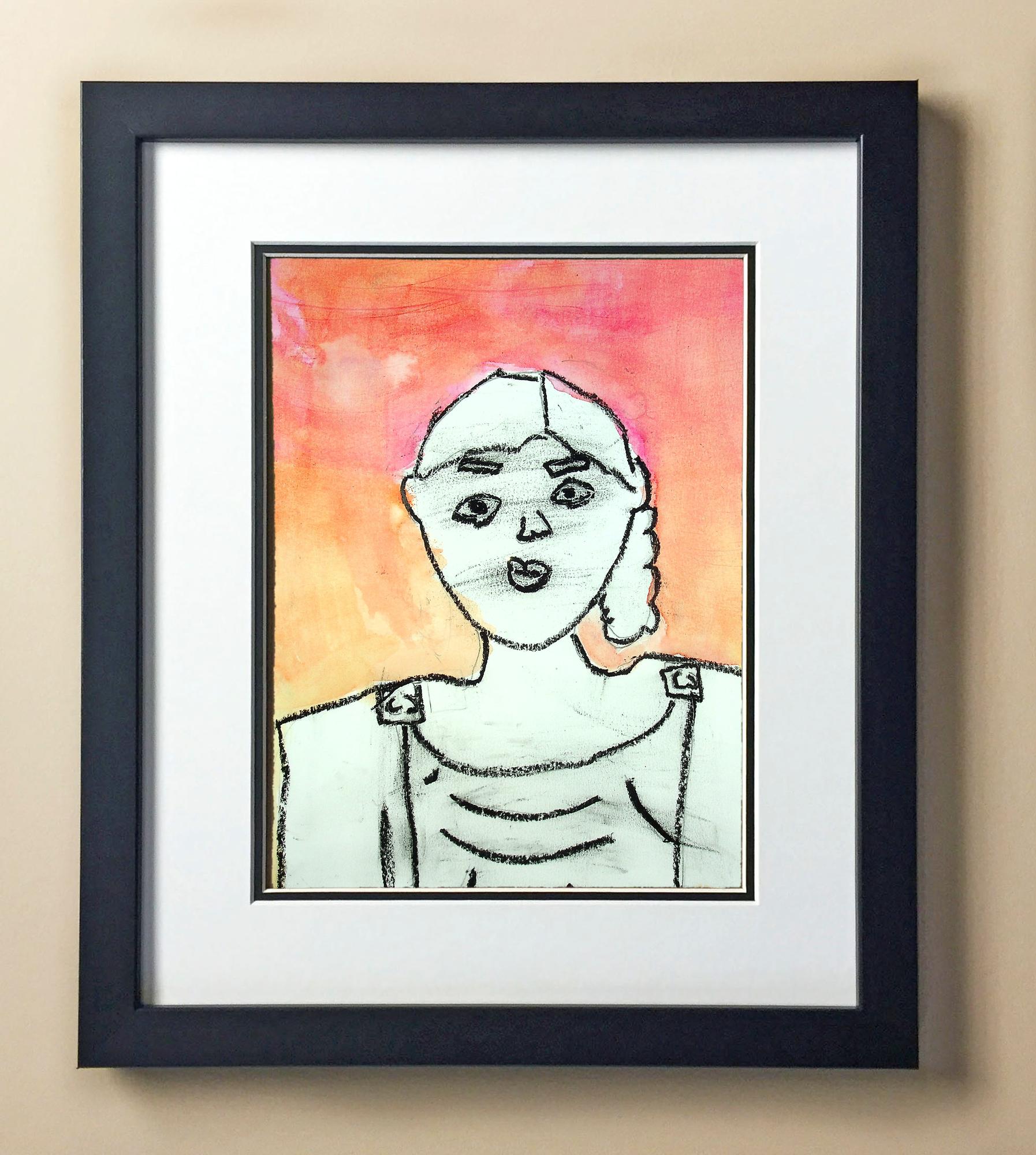 Included with the purchase is the Students Artwork, Frame, double matboard, shatter proof plexiglass, and a ready to hang backerboard with turnbuttons