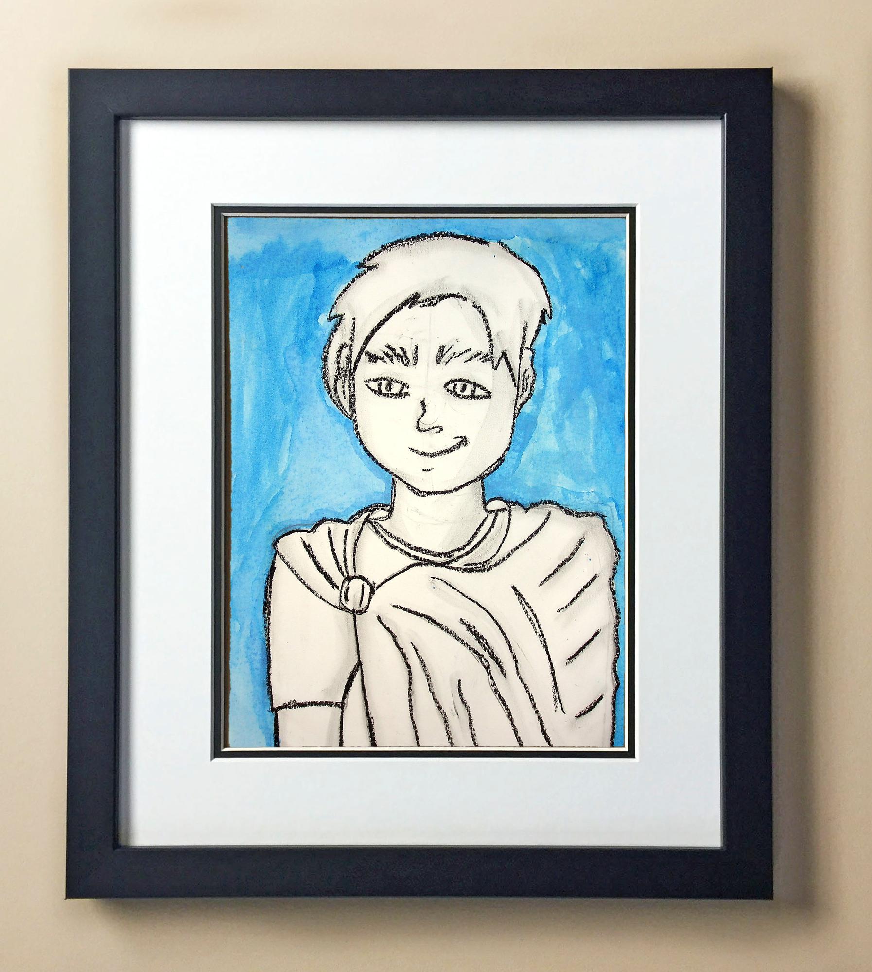 Included with the purchase is the Students Artwork, Frame, double matboard, shatter proof plexiglass, and a ready to hang backerboard with turnbuttons