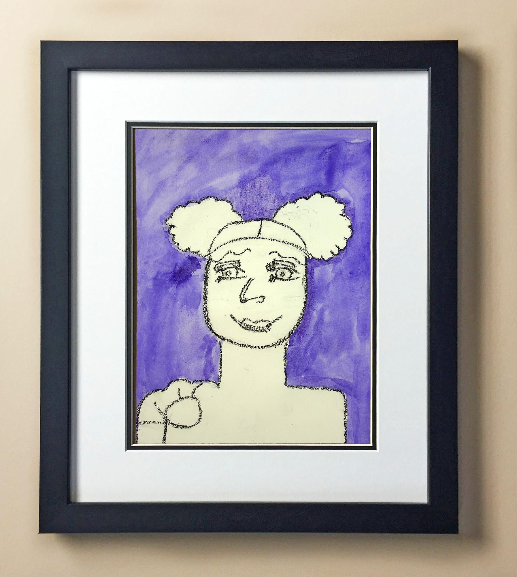 Included with the purchase is the Students Artwork, Frame, double matboard, shatter proof plexiglass, and a ready to hang backerboard with turnbuttons