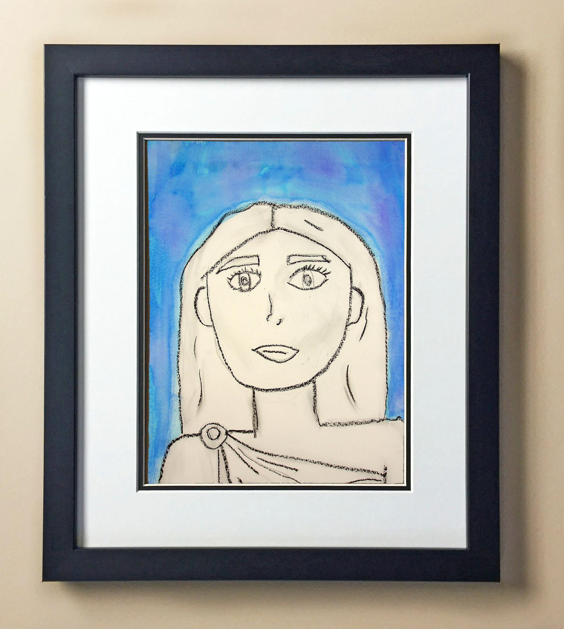Included with the purchase is the Students Artwork, Frame, double matboard, shatter proof plexiglass, and a ready to hang backerboard with turnbuttons