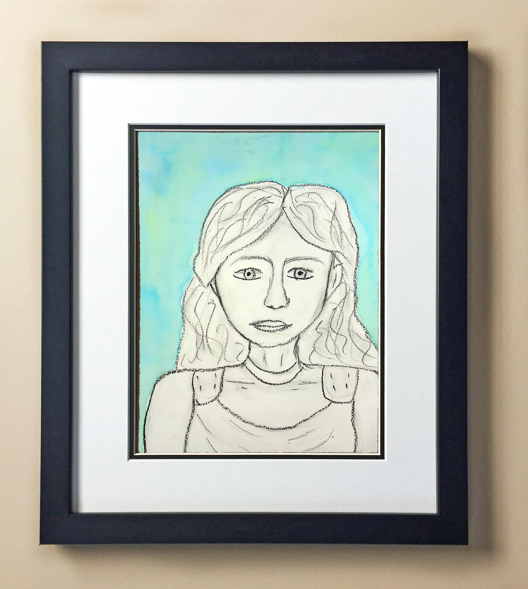 Included with the purchase is the Students Artwork, Frame, double matboard, shatter proof plexiglass, and a ready to hang backerboard with turnbuttons