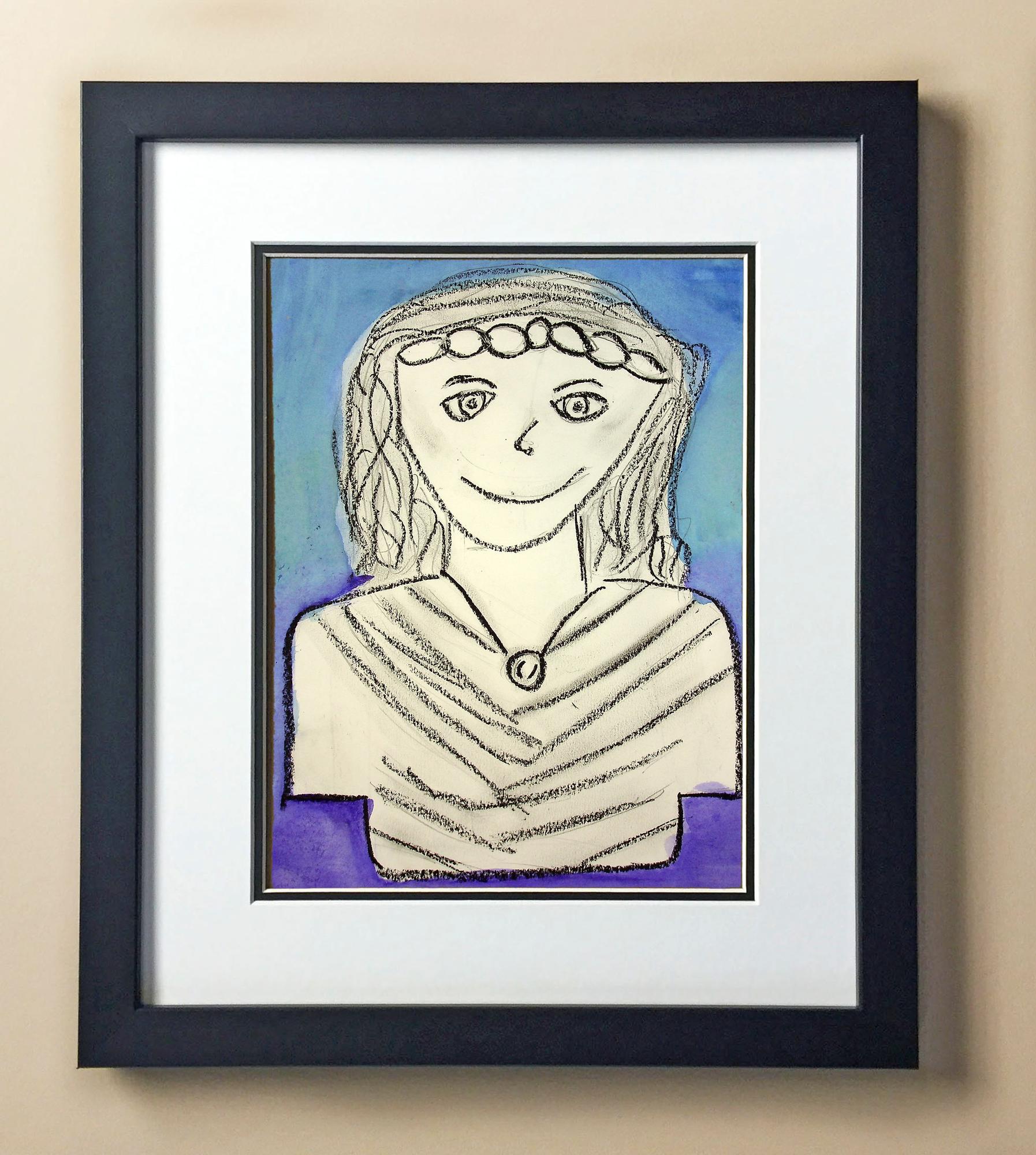 Included with the purchase is the Students Artwork, Frame, double matboard, shatter proof plexiglass, and a ready to hang backerboard with turnbuttons
