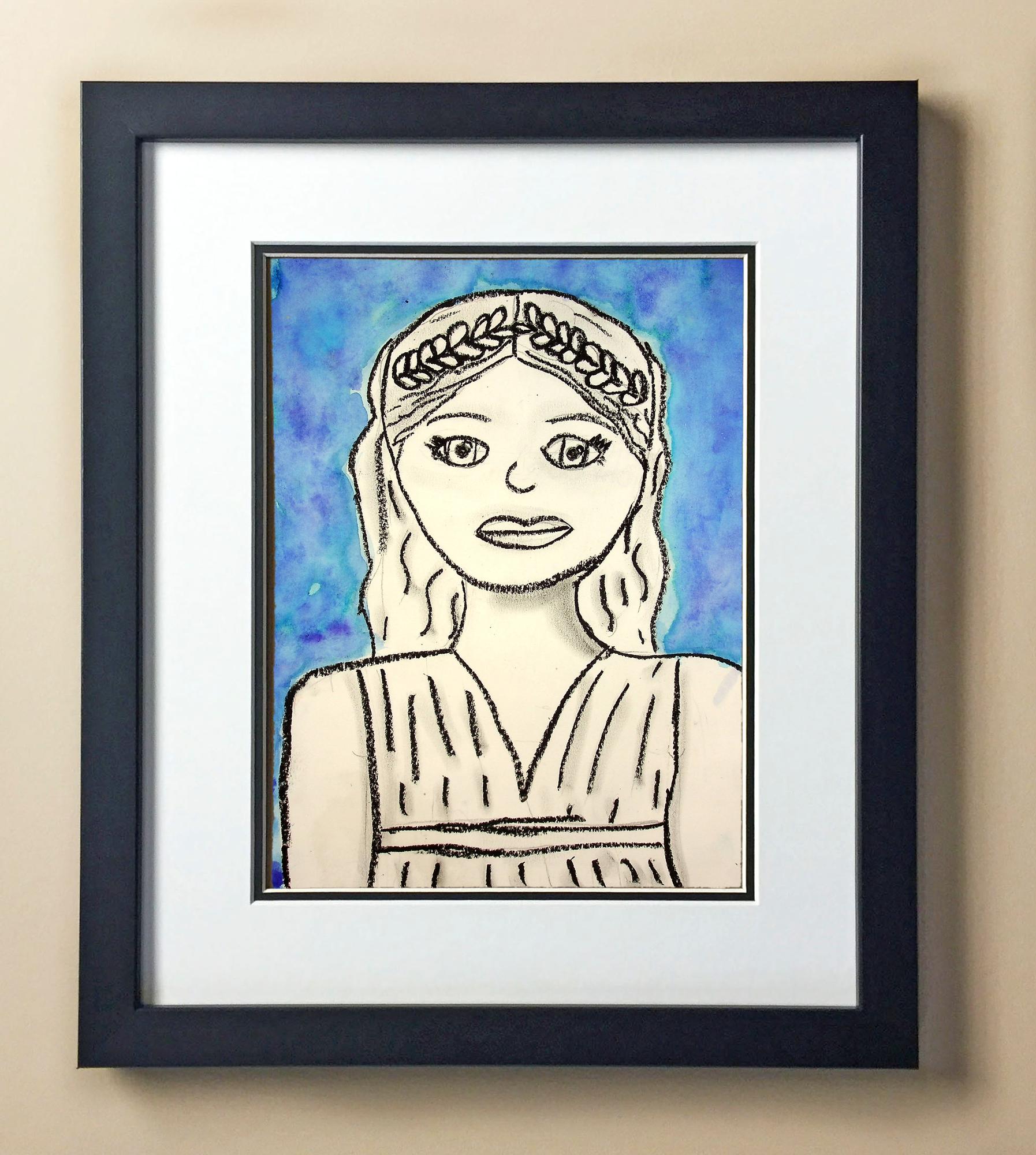 Included with the purchase is the Students Artwork, Frame, double matboard, shatter proof plexiglass, and a ready to hang backerboard with turnbuttons
