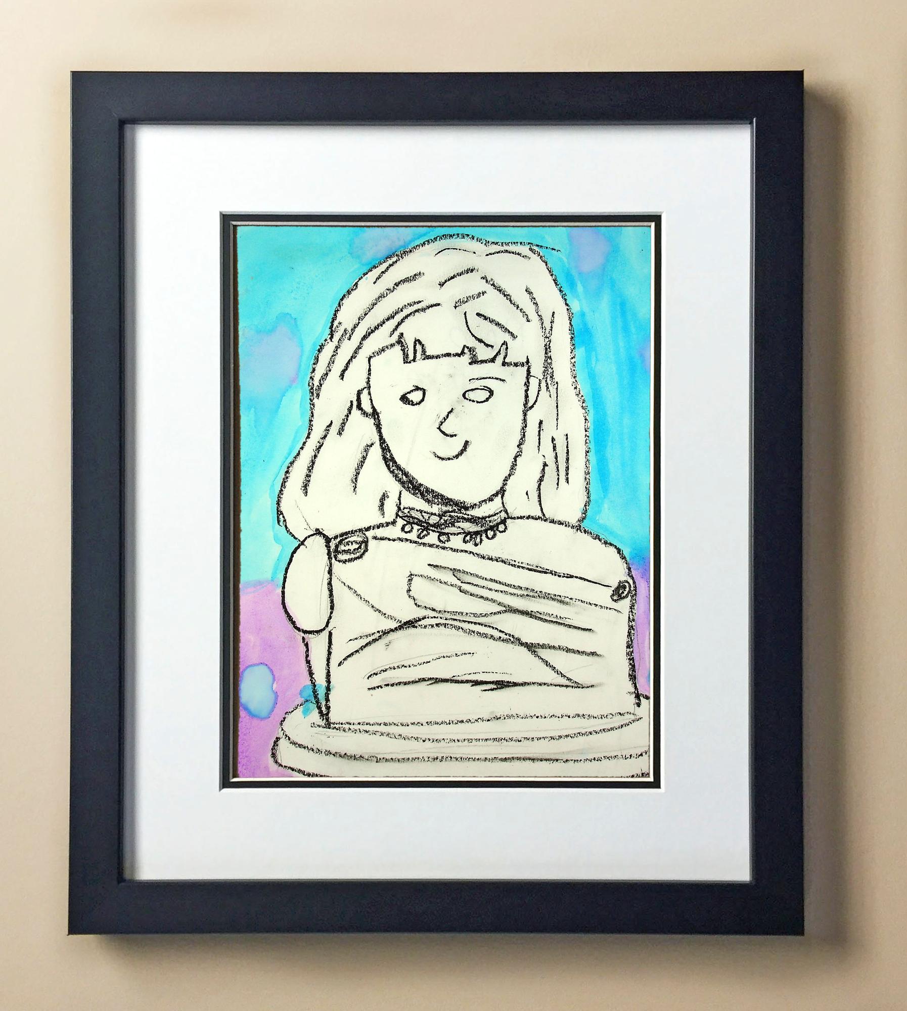 Included with the purchase is the Students Artwork, Frame, double matboard, shatter proof plexiglass, and a ready to hang backerboard with turnbuttons