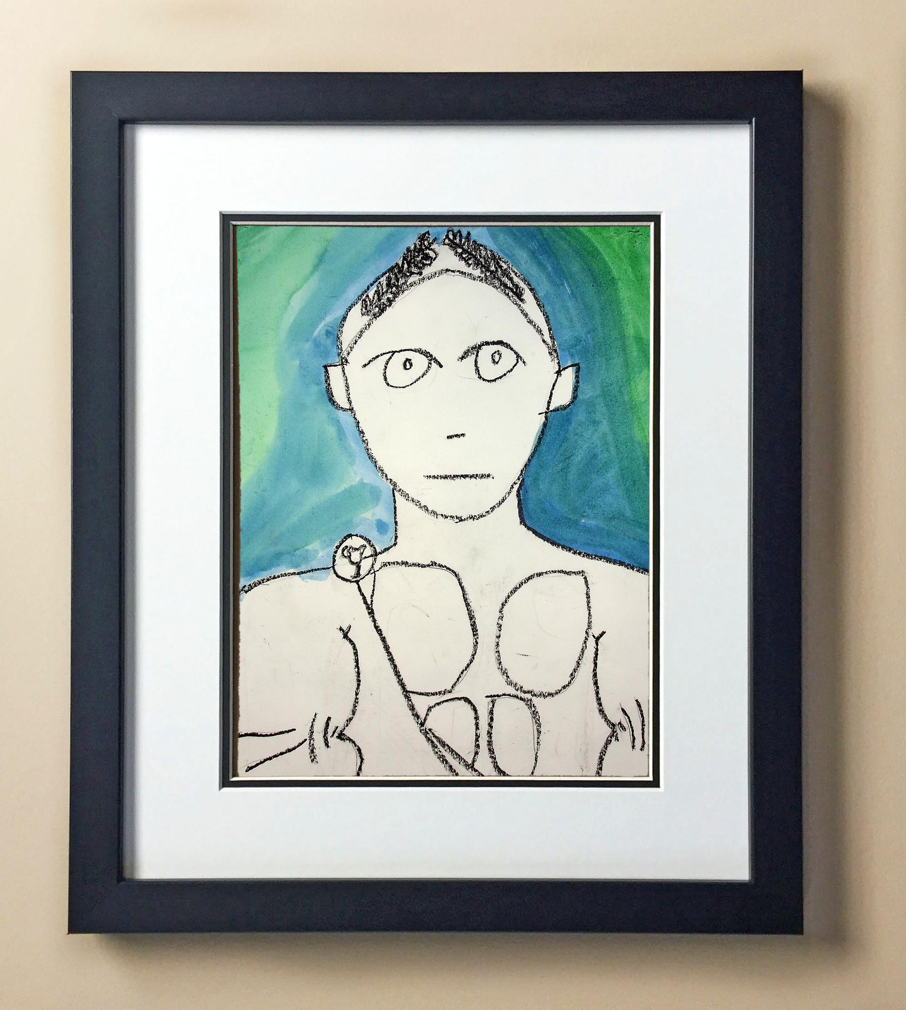 Included with the purchase is the Students Artwork, Frame, double matboard, shatter proof plexiglass, and a ready to hang backerboard with turnbuttons