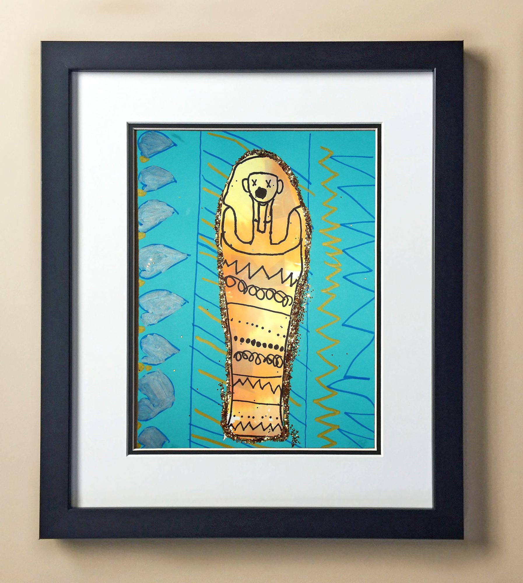 Included with the purchase is the Students Artwork, Frame, double matboard, shatter proof plexiglass, and a ready to hang backerboard with turnbuttons