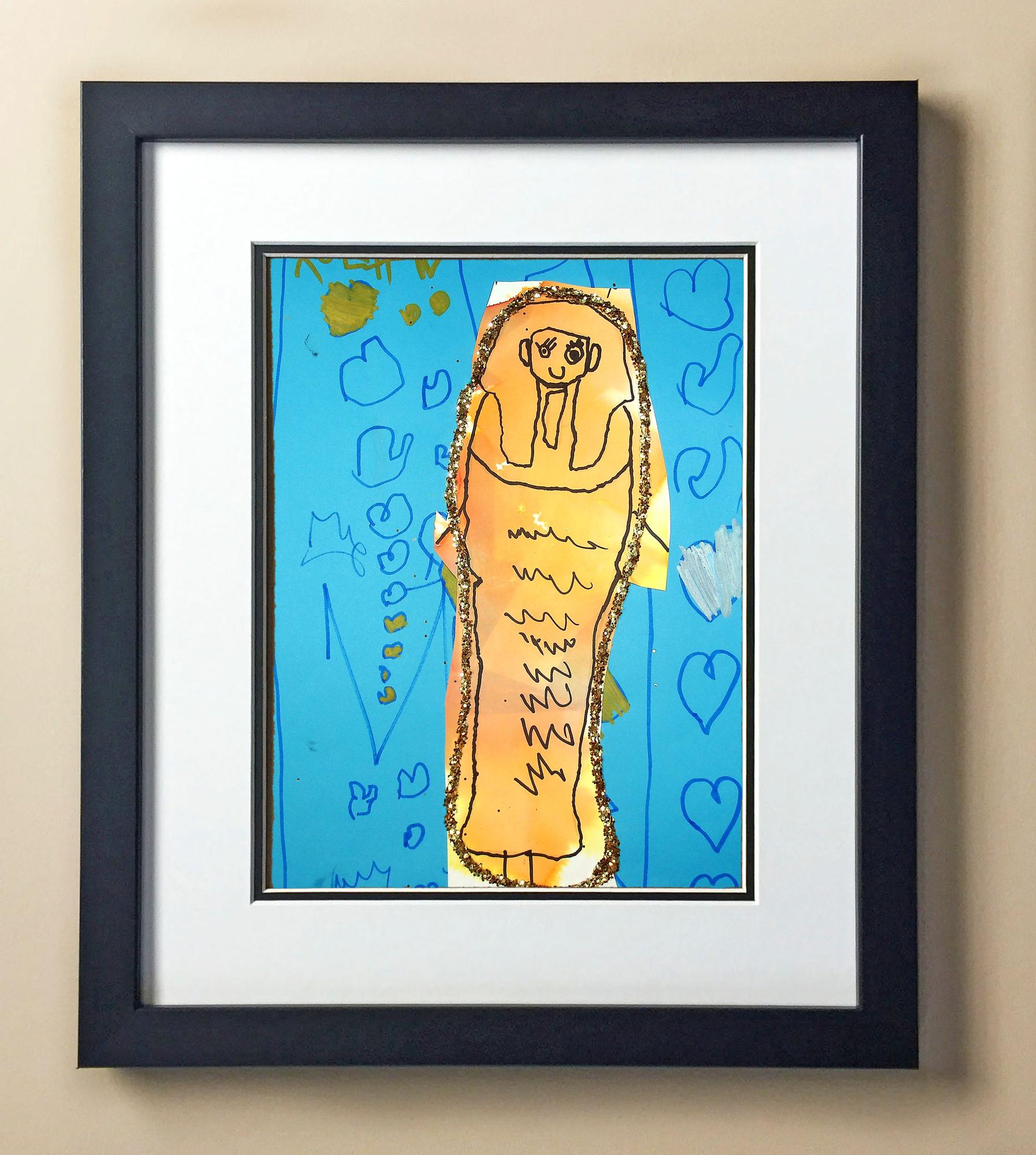 Included with the purchase is the Students Artwork, Frame, double matboard, shatter proof plexiglass, and a ready to hang backerboard with turnbuttons
