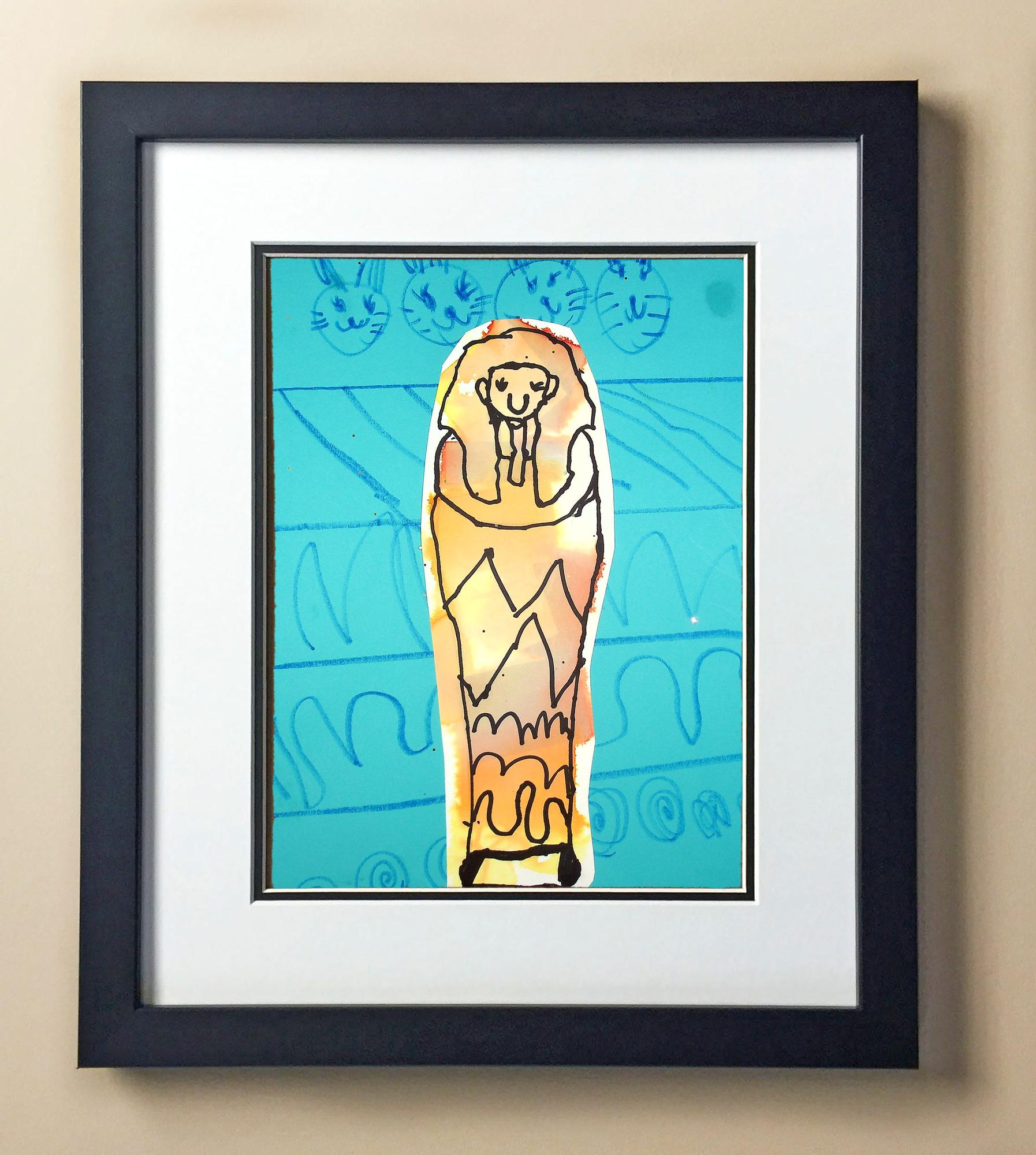 Included with the purchase is the Students Artwork, Frame, double matboard, shatter proof plexiglass, and a ready to hang backerboard with turnbuttons