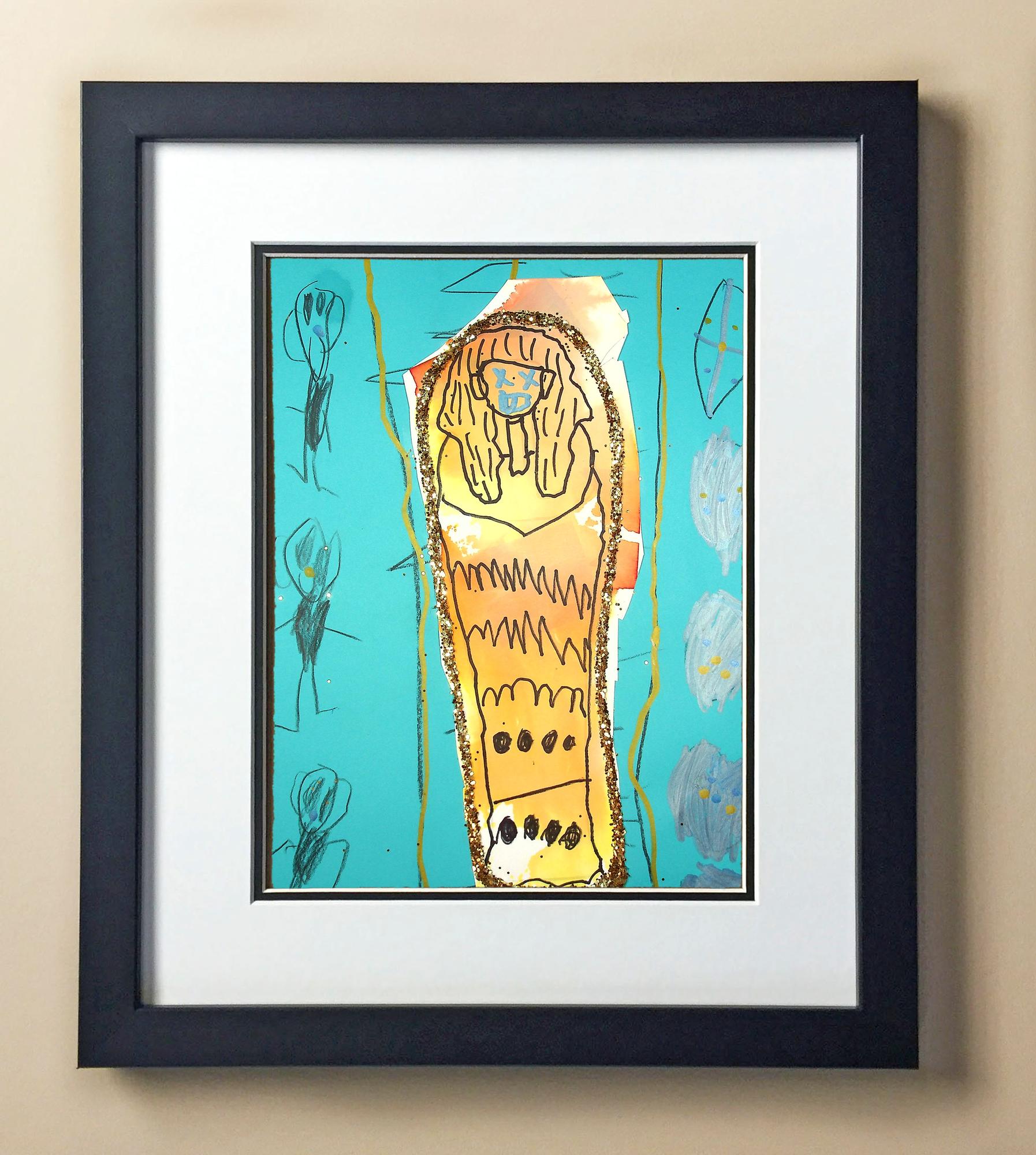 Included with the purchase is the Students Artwork, Frame, double matboard, shatter proof plexiglass, and a ready to hang backerboard with turnbuttons