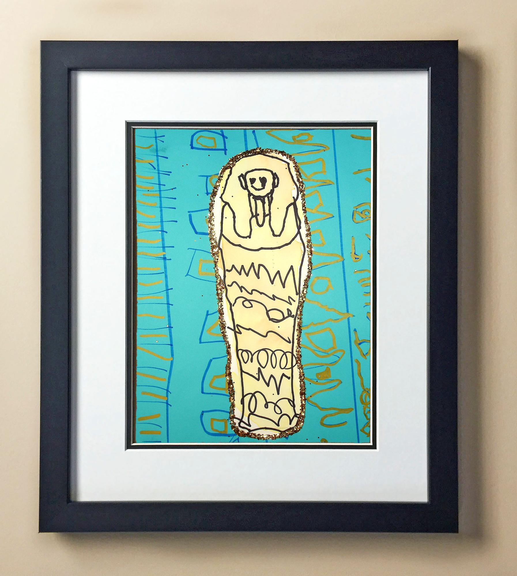 Included with the purchase is the Students Artwork, Frame, double matboard, shatter proof plexiglass, and a ready to hang backerboard with turnbuttons