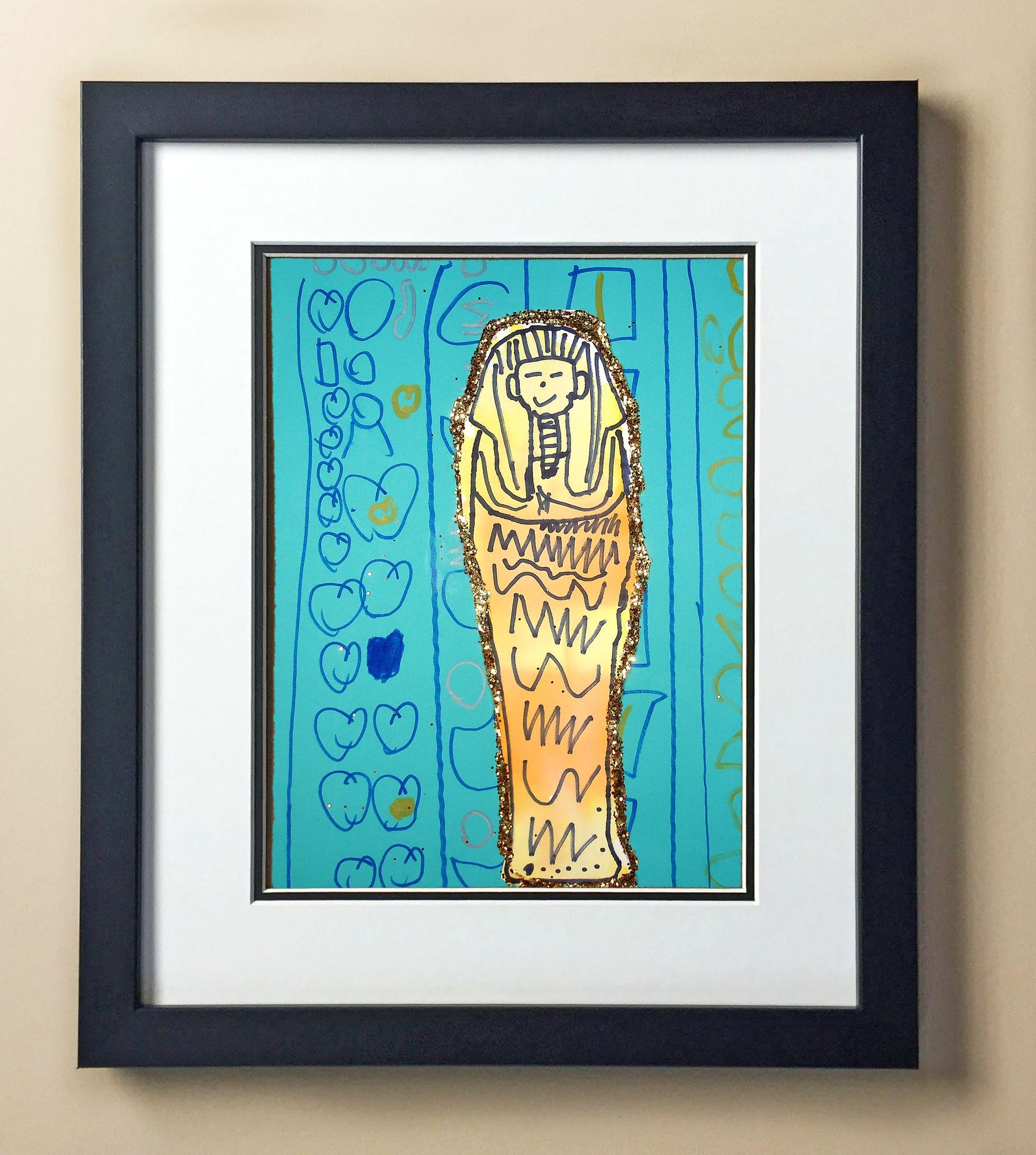 Included with the purchase is the Students Artwork, Frame, double matboard, shatter proof plexiglass, and a ready to hang backerboard with turnbuttons