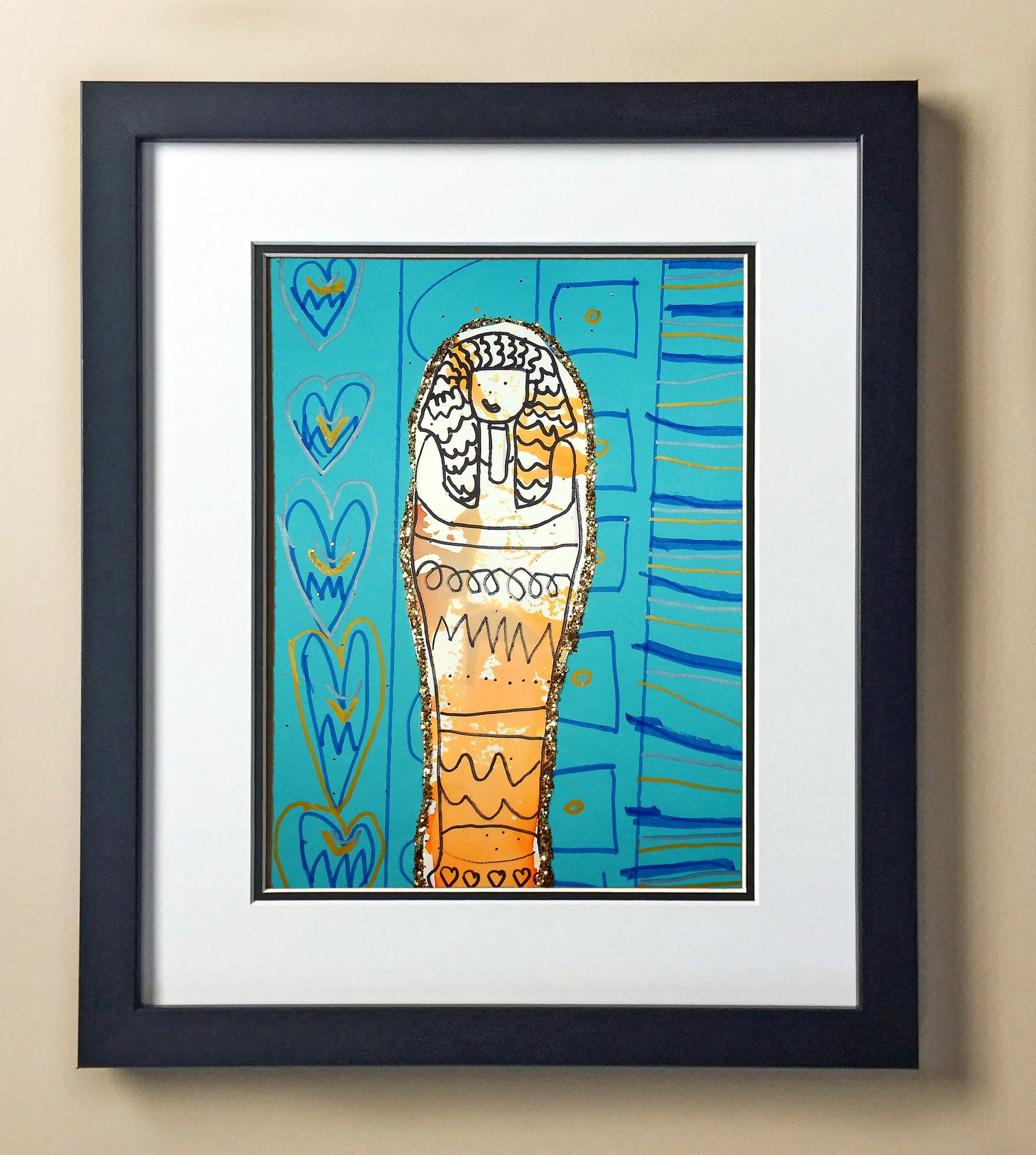 Included with the purchase is the Students Artwork, Frame, double matboard, shatter proof plexiglass, and a ready to hang backerboard with turnbuttons