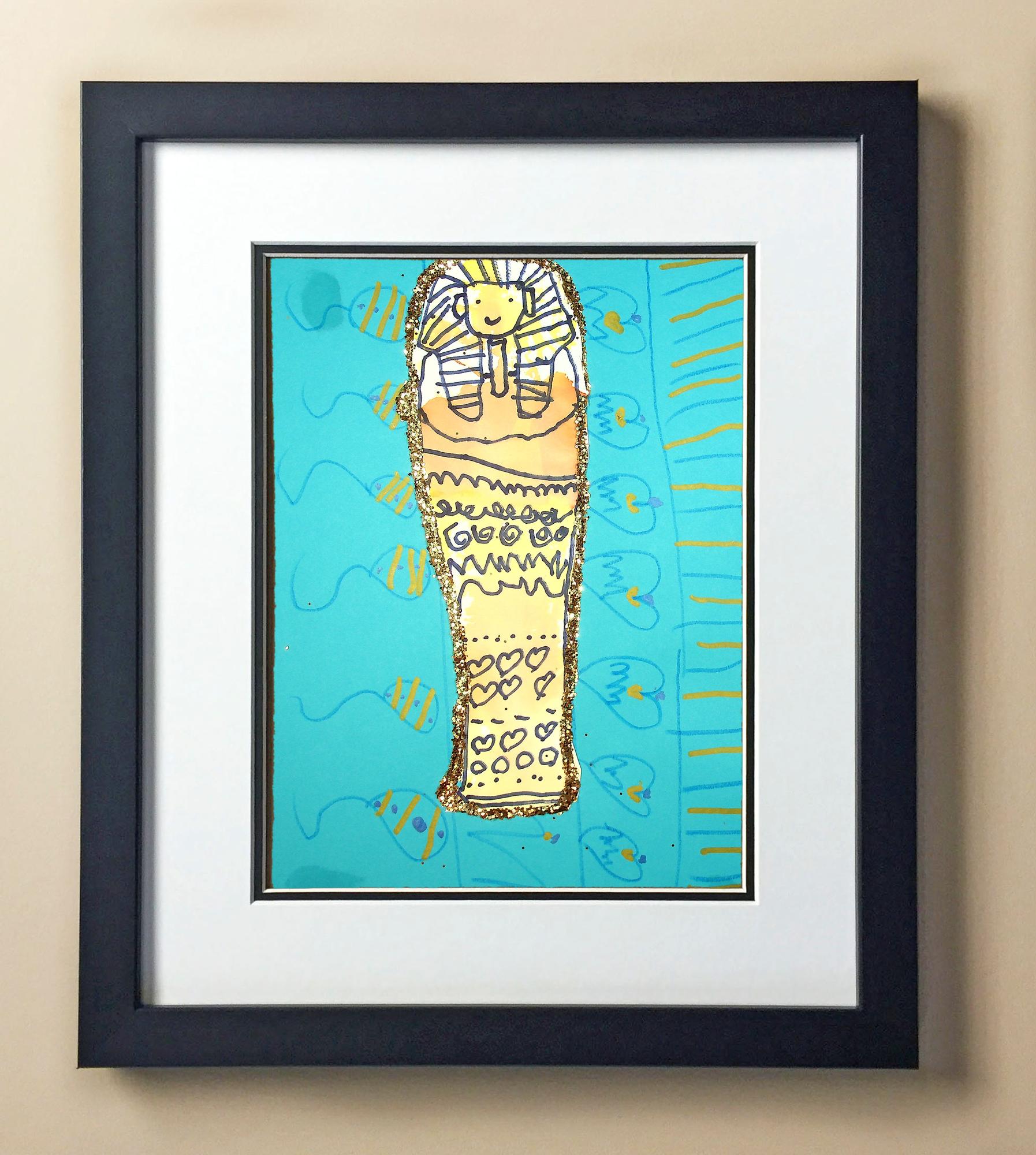 Included with the purchase is the Students Artwork, Frame, double matboard, shatter proof plexiglass, and a ready to hang backerboard with turnbuttons