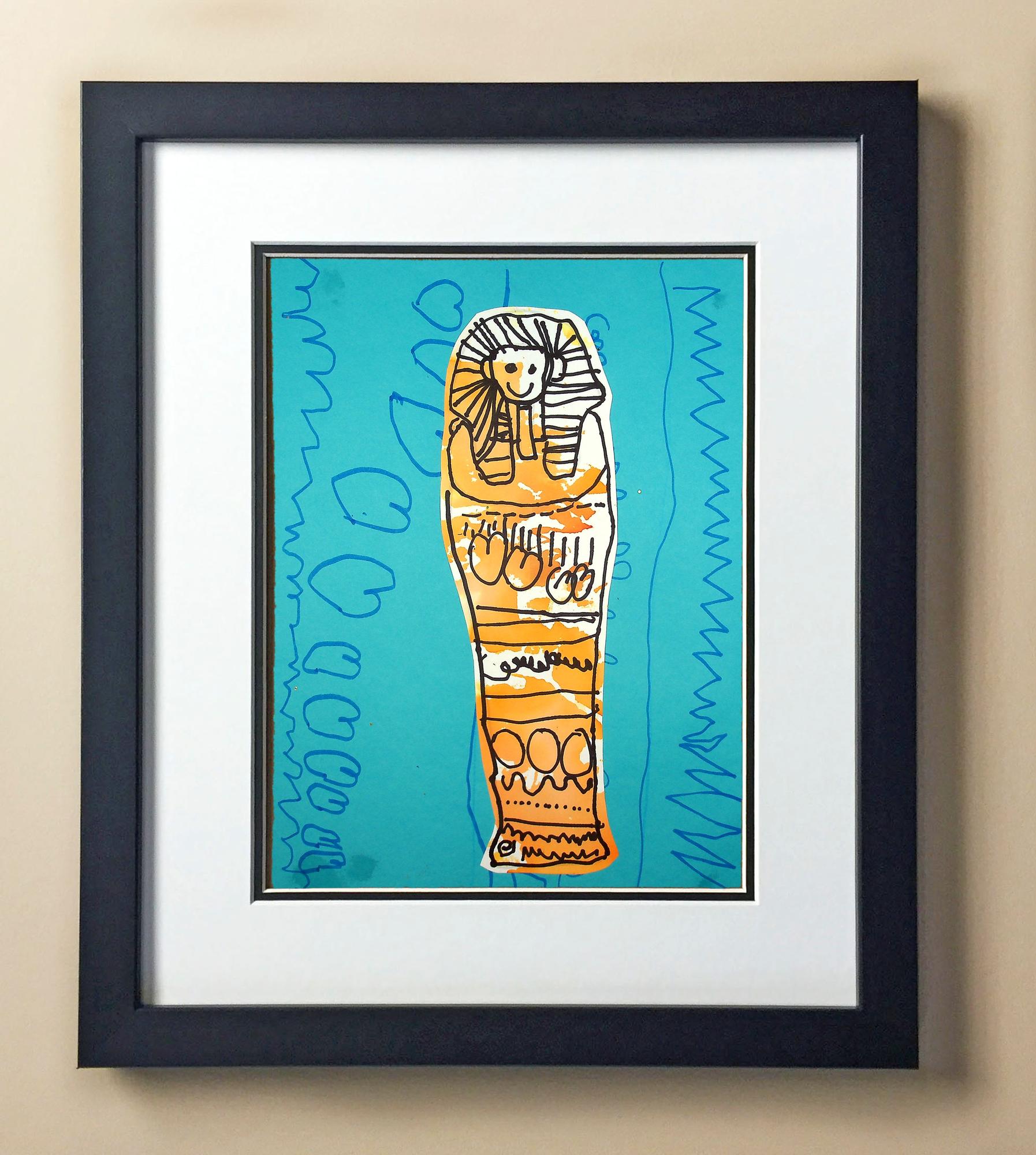 Included with the purchase is the Students Artwork, Frame, double matboard, shatter proof plexiglass, and a ready to hang backerboard with turnbuttons