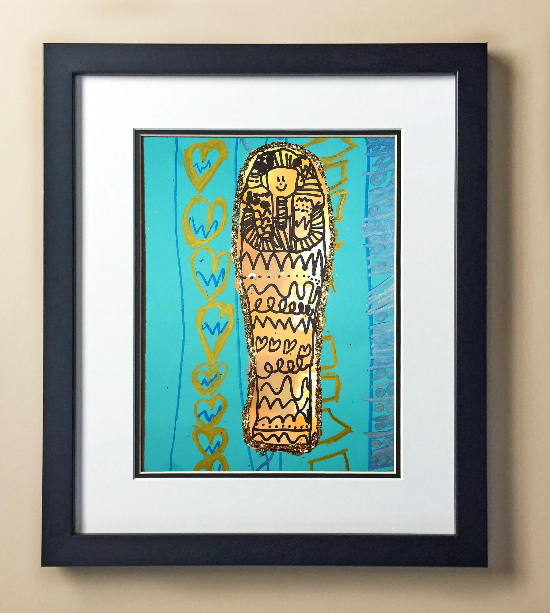 Included with the purchase is the Students Artwork, Frame, double matboard, shatter proof plexiglass, and a ready to hang backerboard with turnbuttons