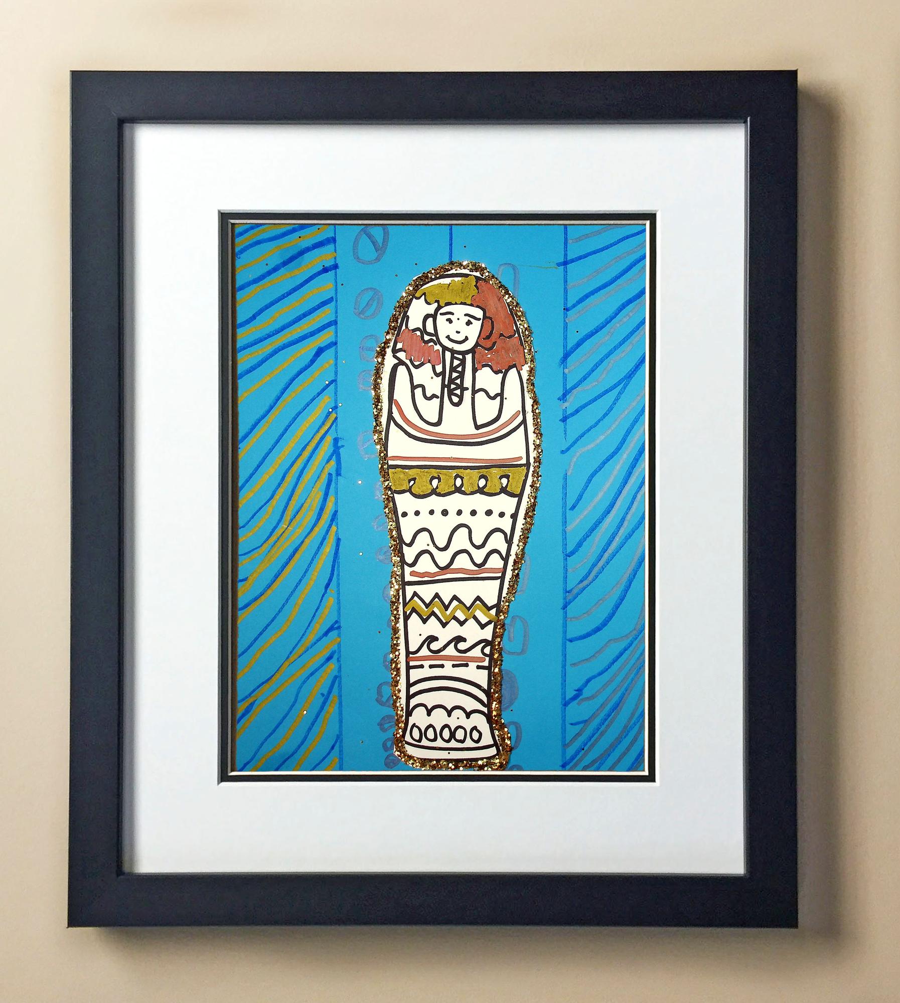 Included with the purchase is the Students Artwork, Frame, double matboard, shatter proof plexiglass, and a ready to hang backerboard with turnbuttons
