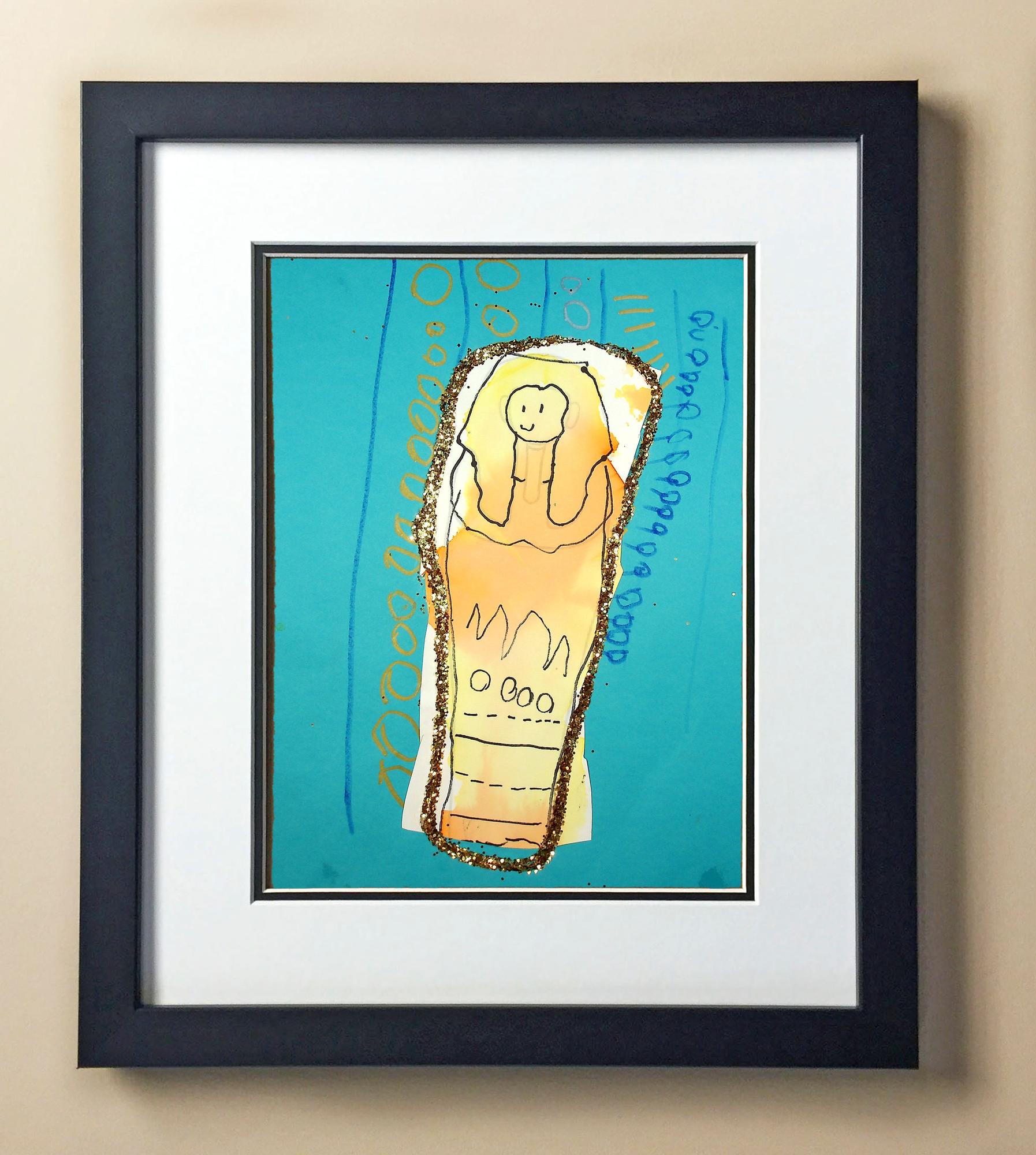 Included with the purchase is the Students Artwork, Frame, double matboard, shatter proof plexiglass, and a ready to hang backerboard with turnbuttons