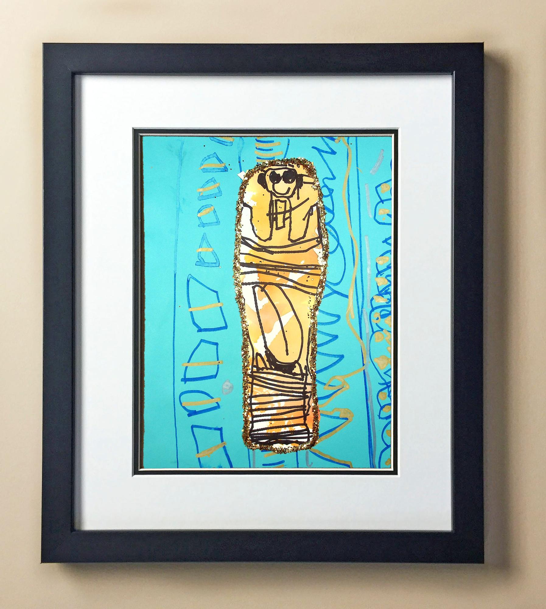 Included with the purchase is the Students Artwork, Frame, double matboard, shatter proof plexiglass, and a ready to hang backerboard with turnbuttons