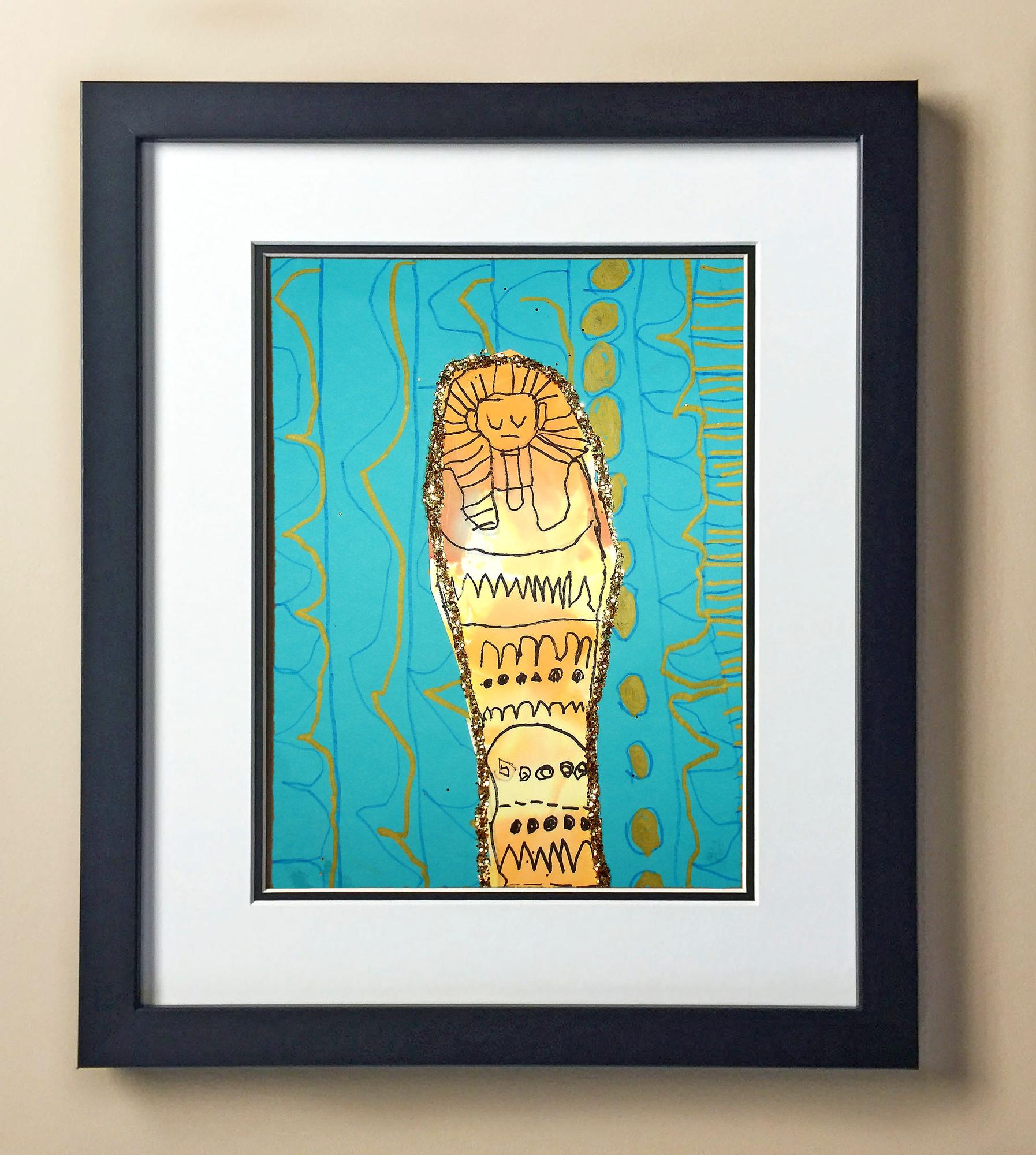 Included with the purchase is the Students Artwork, Frame, double matboard, shatter proof plexiglass, and a ready to hang backerboard with turnbuttons