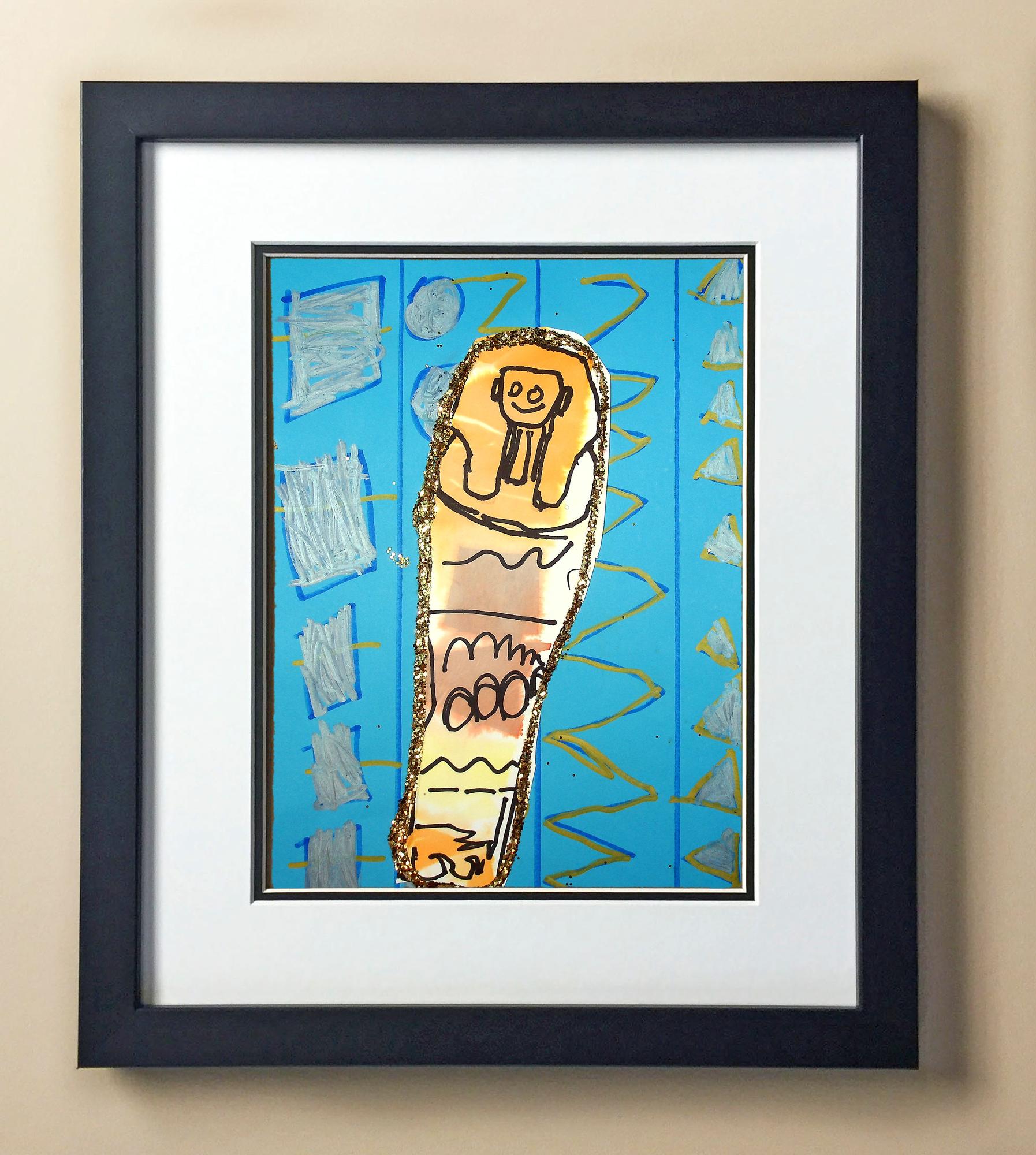 Included with the purchase is the Students Artwork, Frame, double matboard, shatter proof plexiglass, and a ready to hang backerboard with turnbuttons