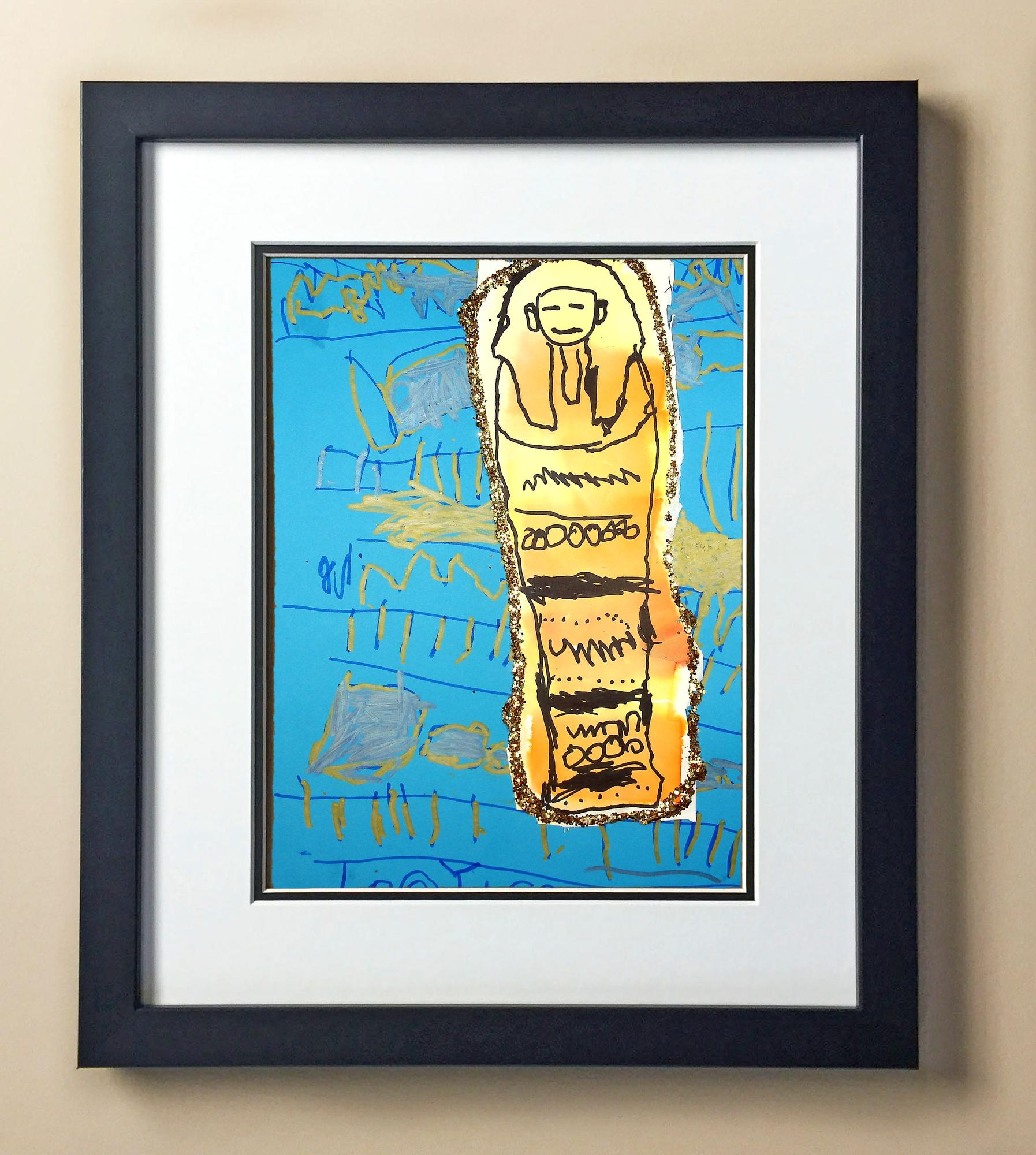 Included with the purchase is the Students Artwork, Frame, double matboard, shatter proof plexiglass, and a ready to hang backerboard with turnbuttons