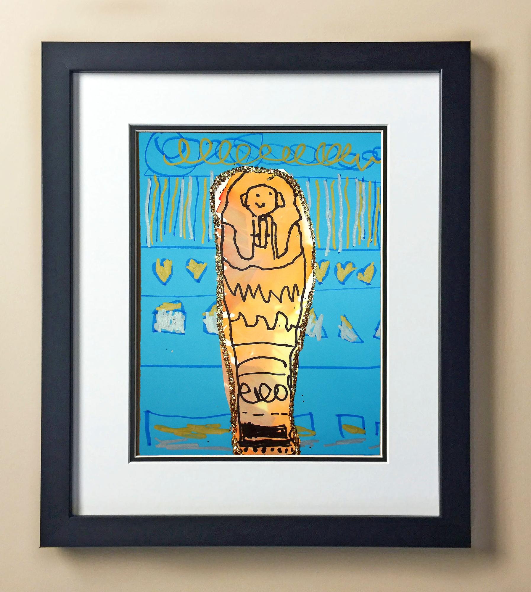 Included with the purchase is the Students Artwork, Frame, double matboard, shatter proof plexiglass, and a ready to hang backerboard with turnbuttons