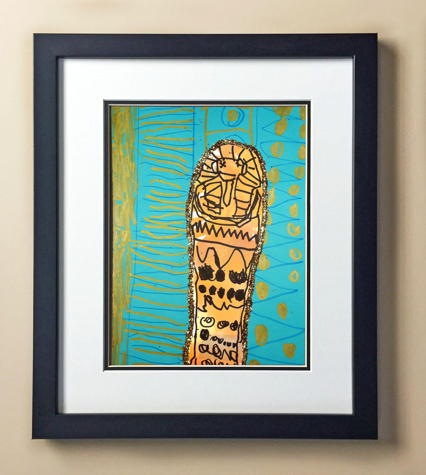 Included with the purchase is the Students Artwork, Frame, double matboard, shatter proof plexiglass, and a ready to hang backerboard with turnbuttons