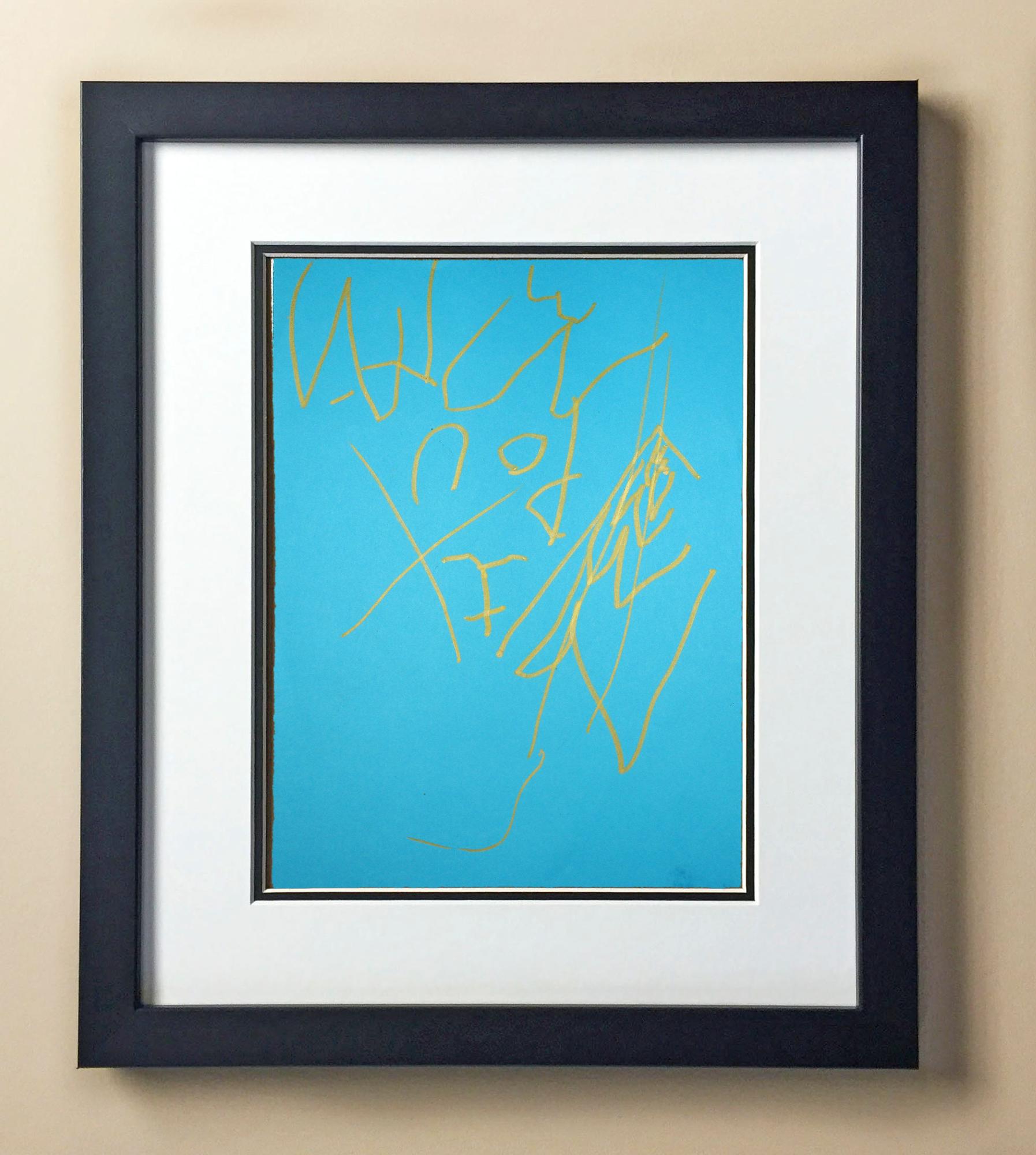 Included with the purchase is the Students Artwork, Frame, double matboard, shatter proof plexiglass, and a ready to hang backerboard with turnbuttons