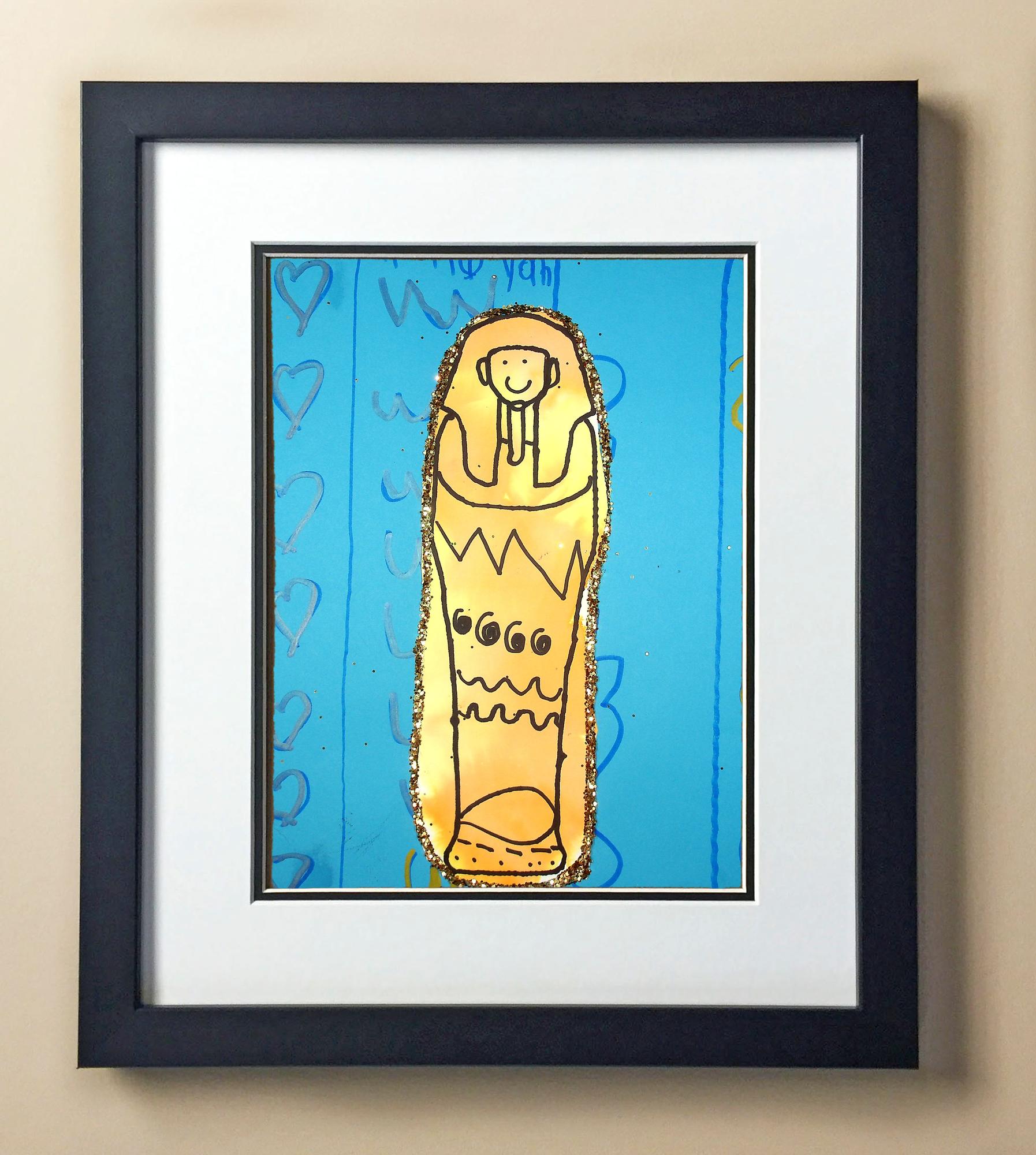 Included with the purchase is the Students Artwork, Frame, double matboard, shatter proof plexiglass, and a ready to hang backerboard with turnbuttons