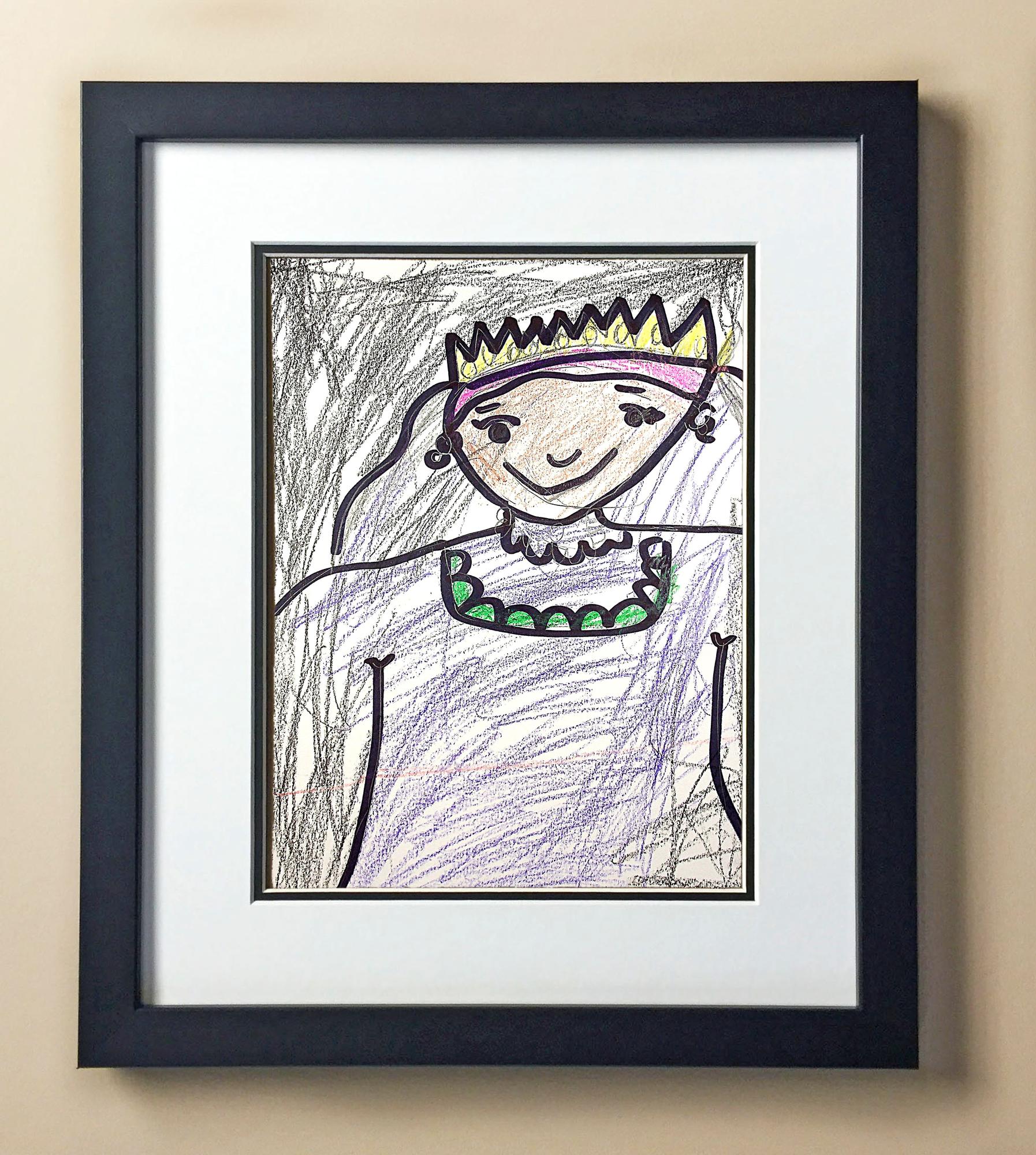 Included with the purchase is the Students Artwork, Frame, double matboard, shatter proof plexiglass, and a ready to hang backerboard with turnbuttons