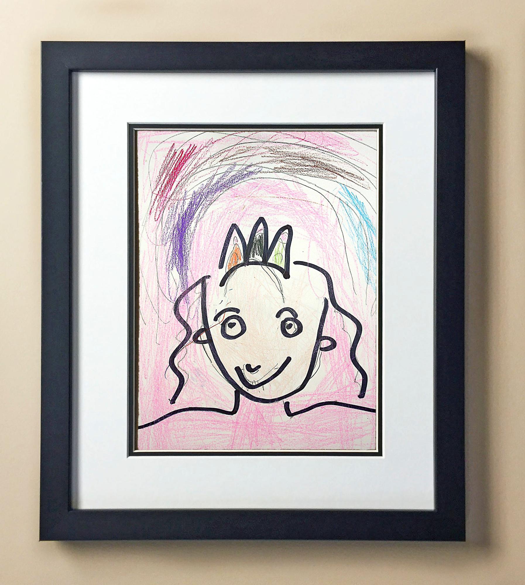 Included with the purchase is the Students Artwork, Frame, double matboard, shatter proof plexiglass, and a ready to hang backerboard with turnbuttons
