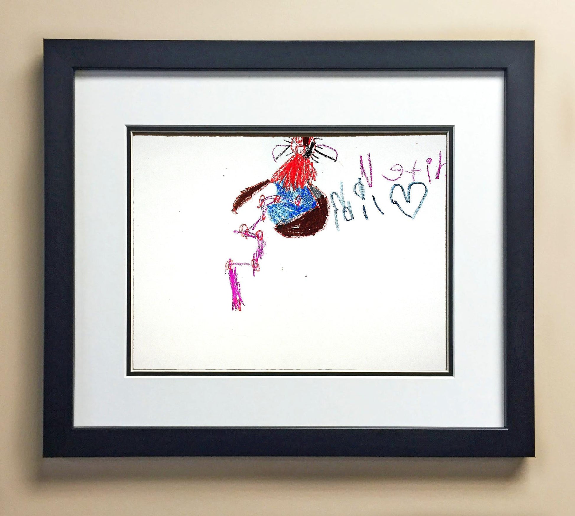 Included with the purchase is the Students Artwork, Frame, double matboard, shatter proof plexiglass, and a ready to hang backerboard with turnbuttons