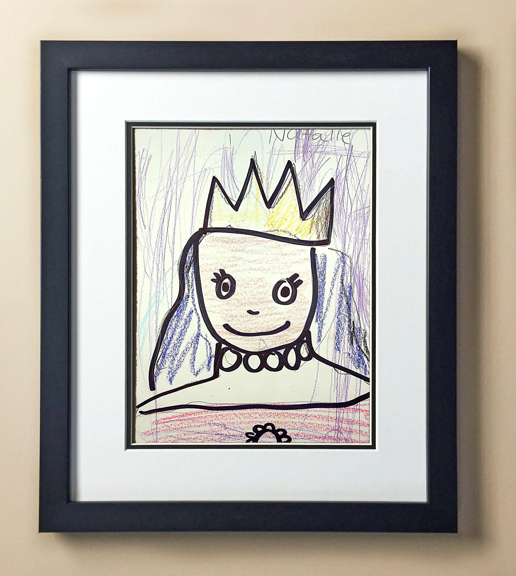 Included with the purchase is the Students Artwork, Frame, double matboard, shatter proof plexiglass, and a ready to hang backerboard with turnbuttons