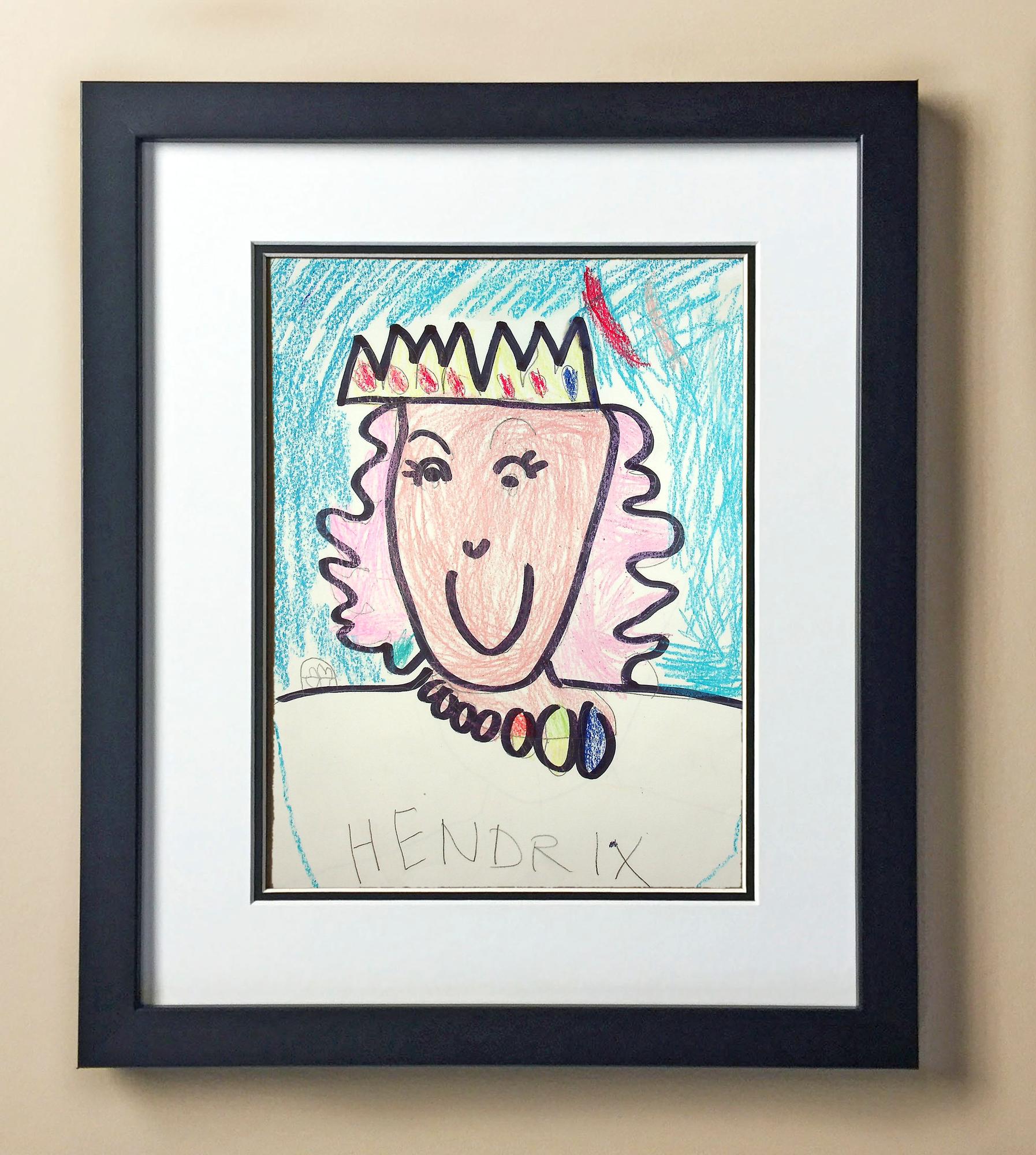 Included with the purchase is the Students Artwork, Frame, double matboard, shatter proof plexiglass, and a ready to hang backerboard with turnbuttons