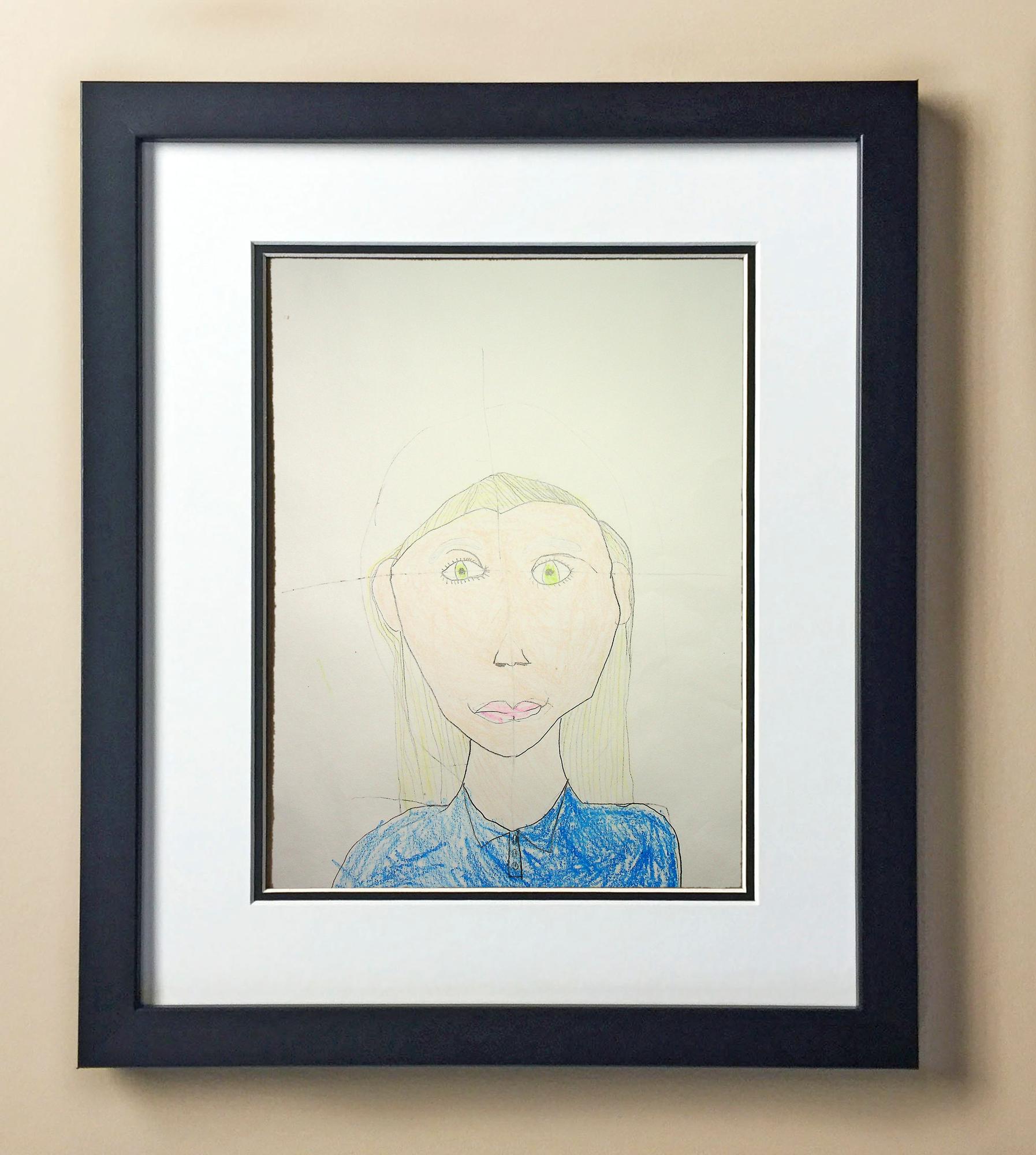 Included with the purchase is the Students Artwork, Frame, double matboard, shatter proof plexiglass, and a ready to hang backerboard with turnbuttons