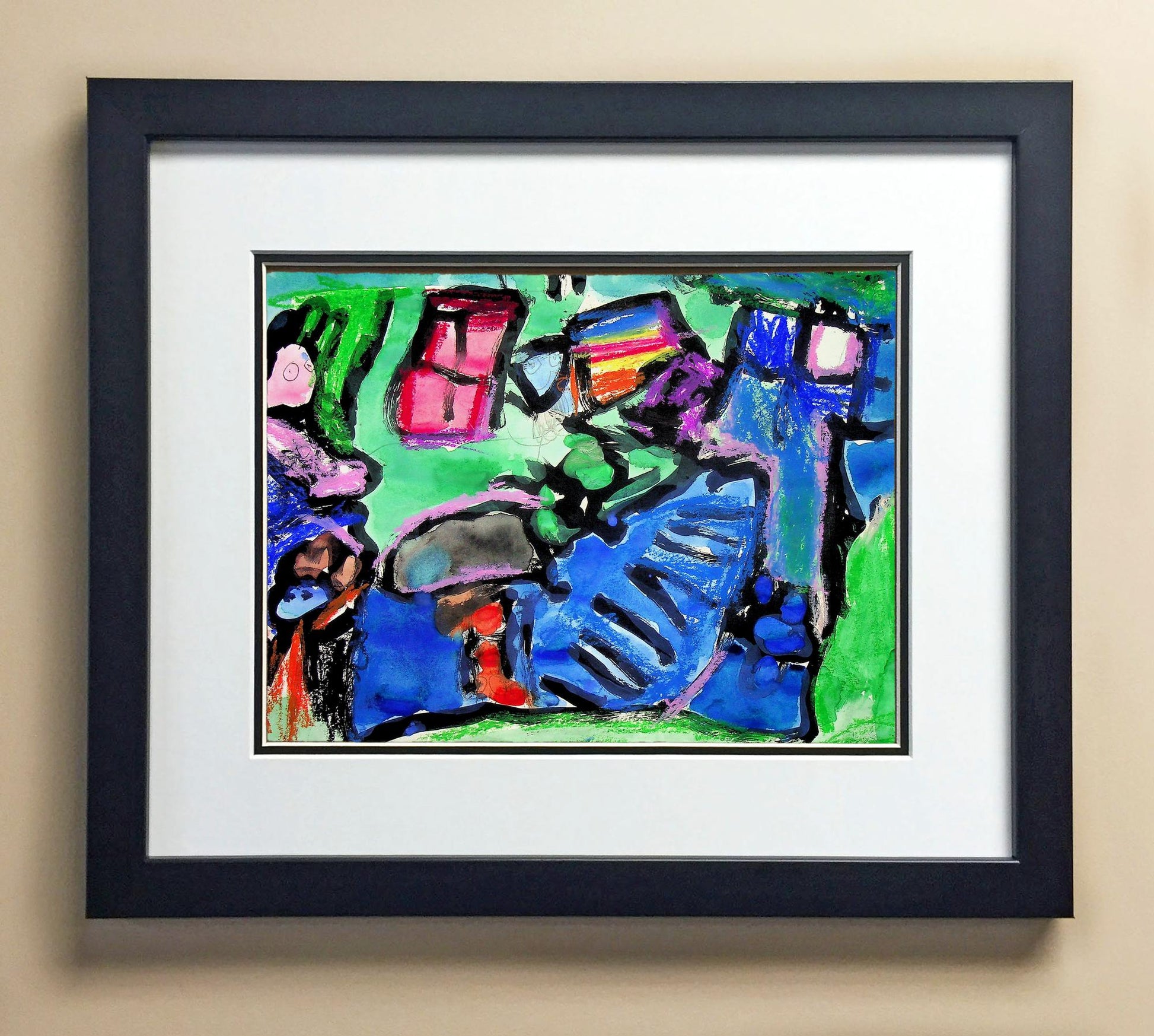 Included with the purchase is the Students Artwork, Frame, double matboard, shatter proof plexiglass, and a ready to hang backerboard with turnbuttons