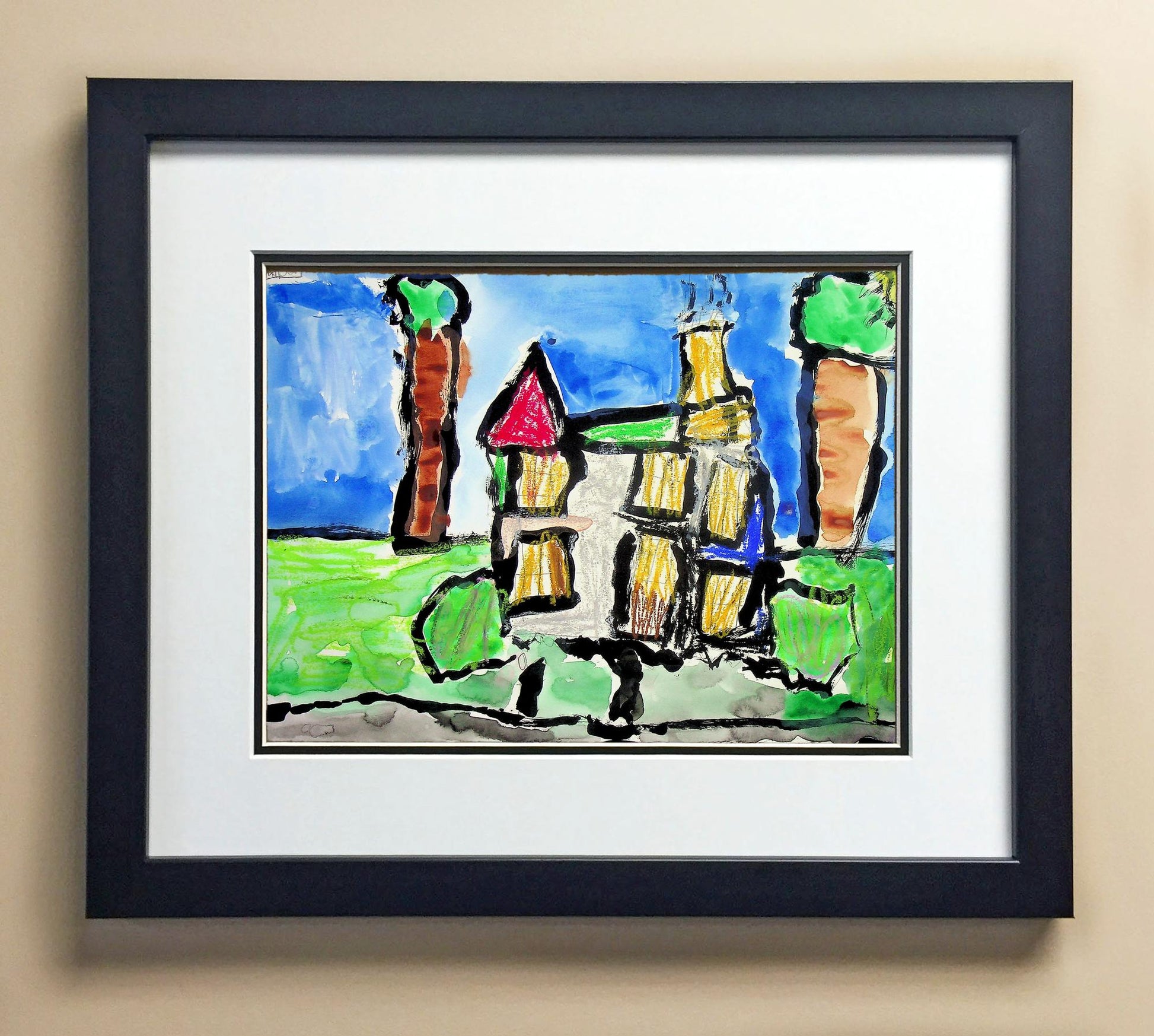 Included with the purchase is the Students Artwork, Frame, double matboard, shatter proof plexiglass, and a ready to hang backerboard with turnbuttons