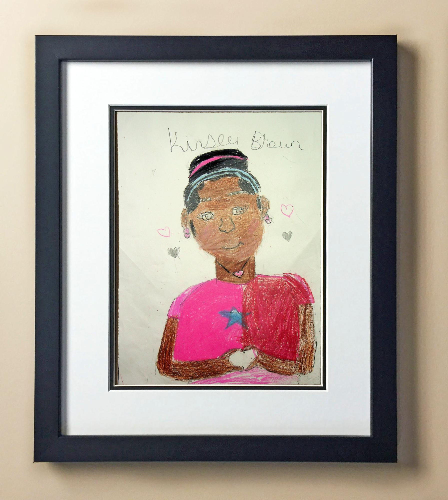 Included with the purchase is the Students Artwork, Frame, double matboard, shatter proof plexiglass, and a ready to hang backerboard with turnbuttons