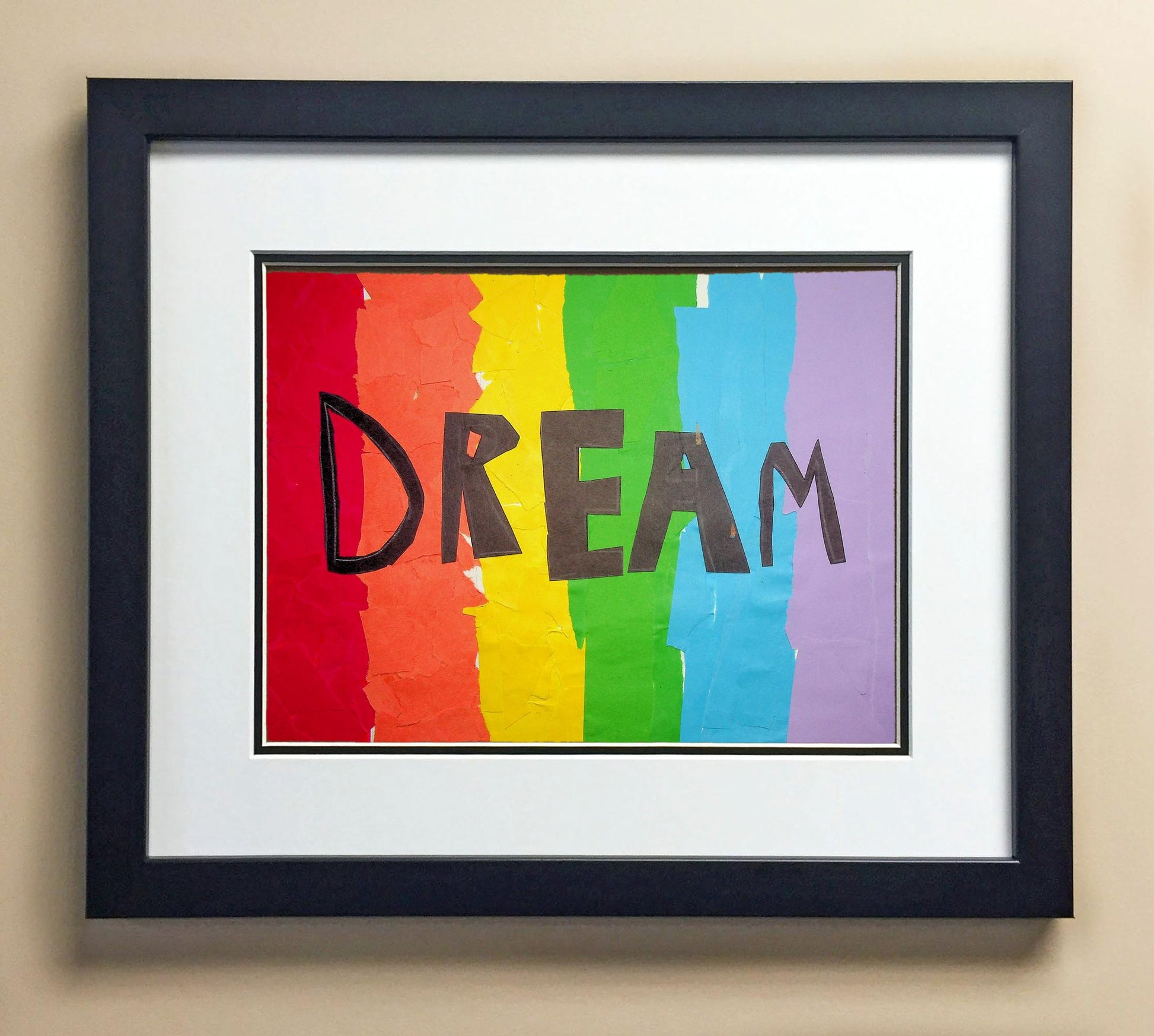Included with the purchase is the Students Artwork, Frame, double matboard, shatter proof plexiglass, and a ready to hang backerboard with turnbuttons