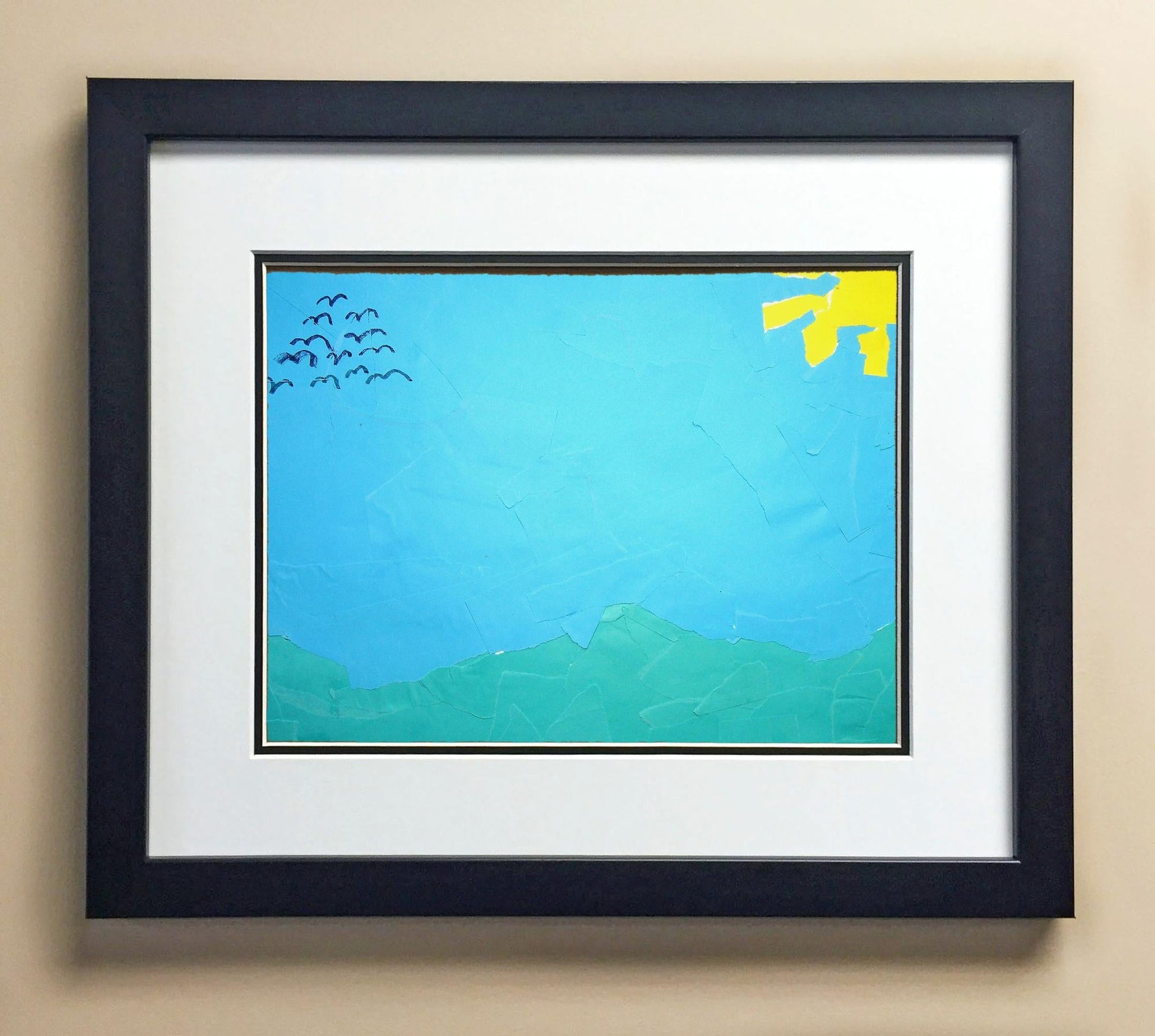 Included with the purchase is the Students Artwork, Frame, double matboard, shatter proof plexiglass, and a ready to hang backerboard with turnbuttons