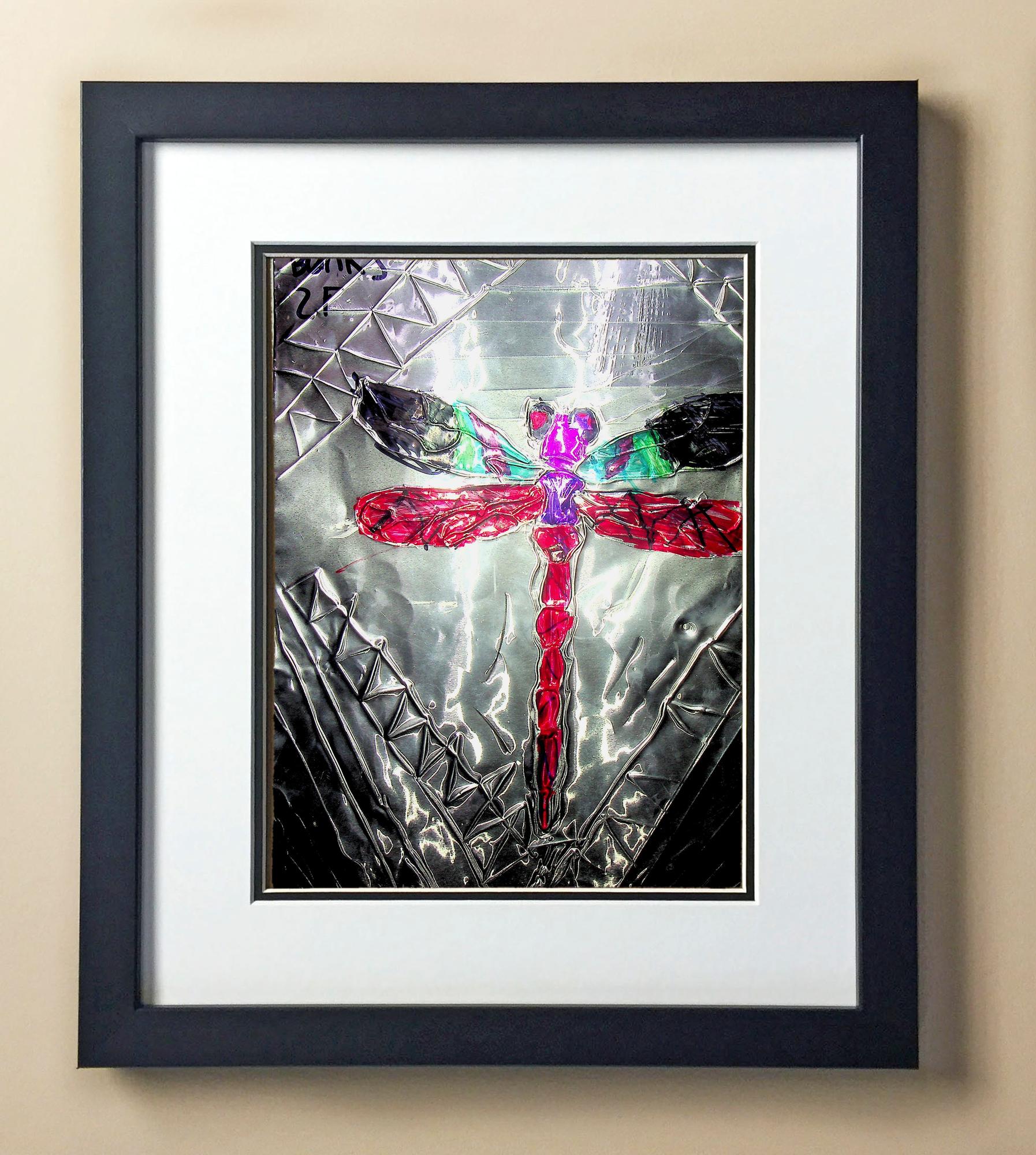 Included with the purchase is the Students Artwork, Frame, double matboard, shatter proof plexiglass, and a ready to hang backerboard with turnbuttons