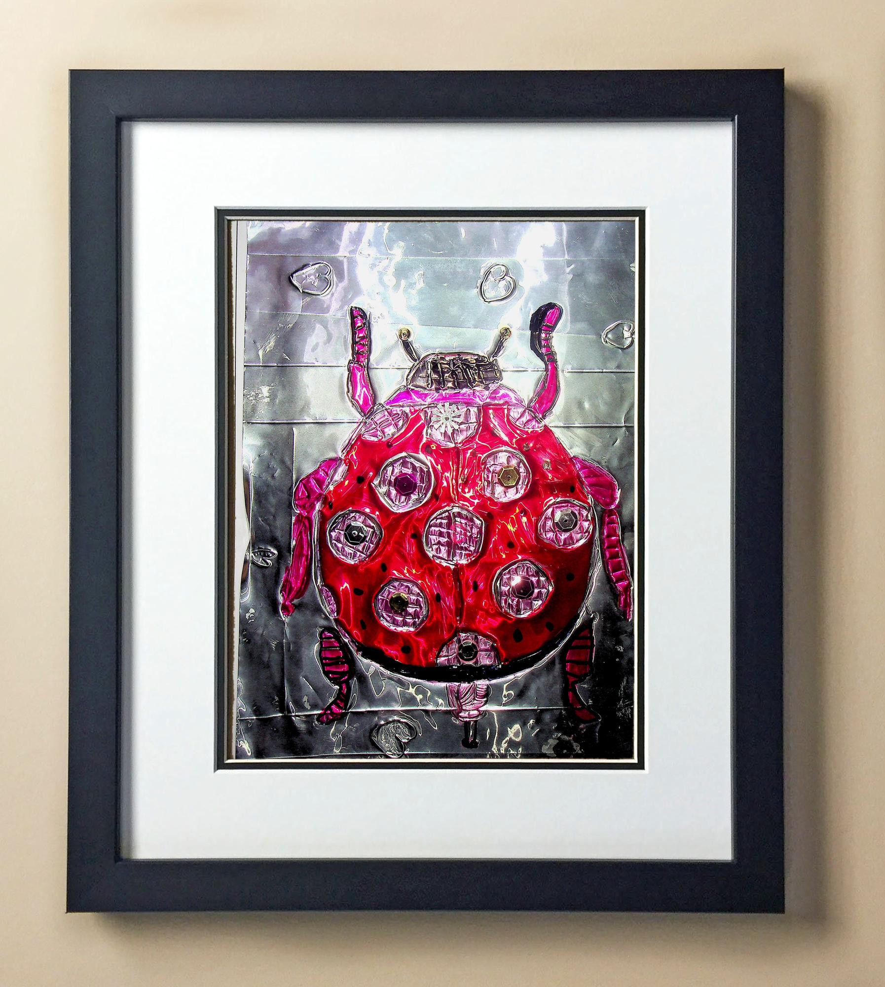 Included with the purchase is the Students Artwork, Frame, double matboard, shatter proof plexiglass, and a ready to hang backerboard with turnbuttons