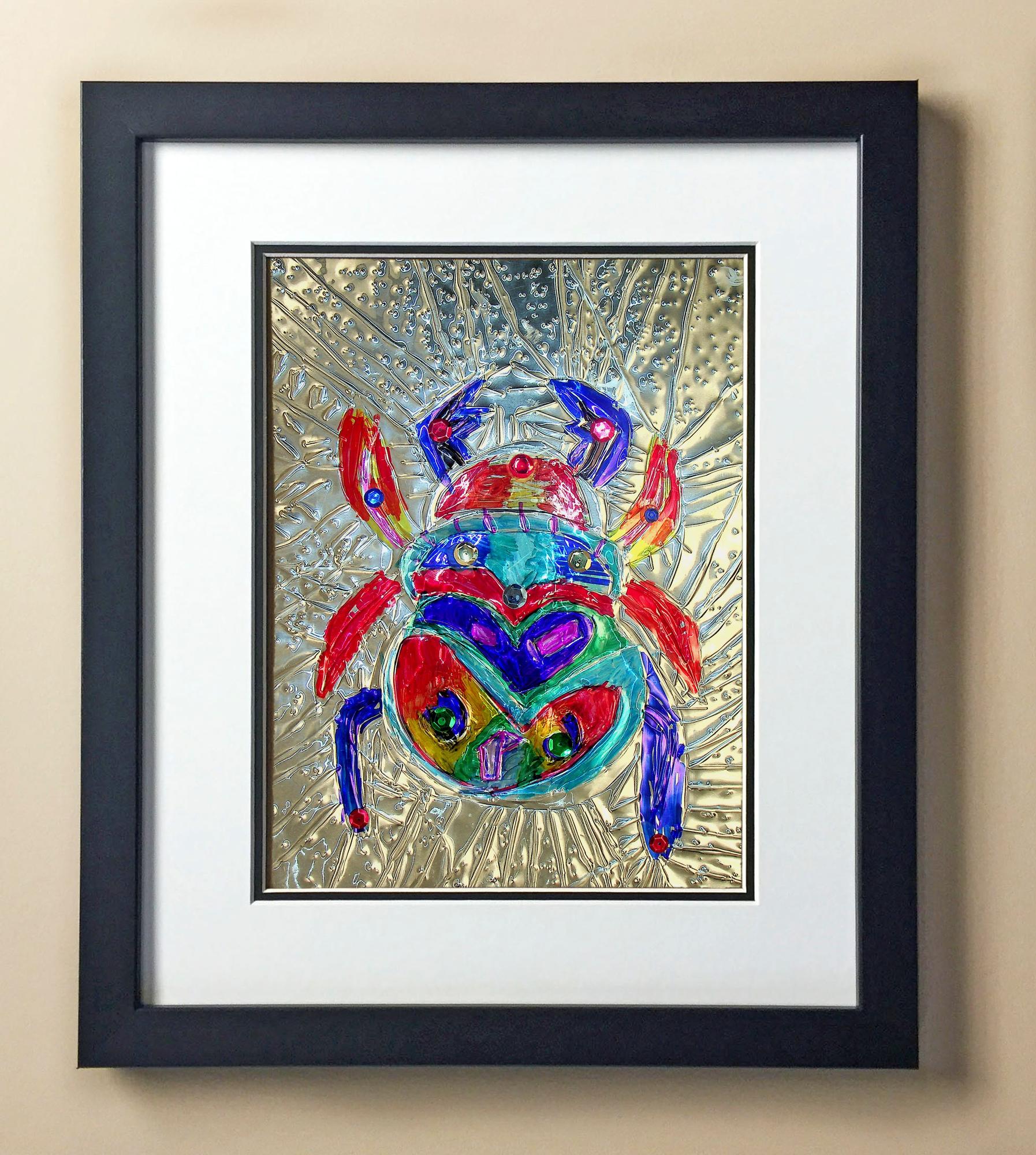 Included with the purchase is the Students Artwork, Frame, double matboard, shatter proof plexiglass, and a ready to hang backerboard with turnbuttons