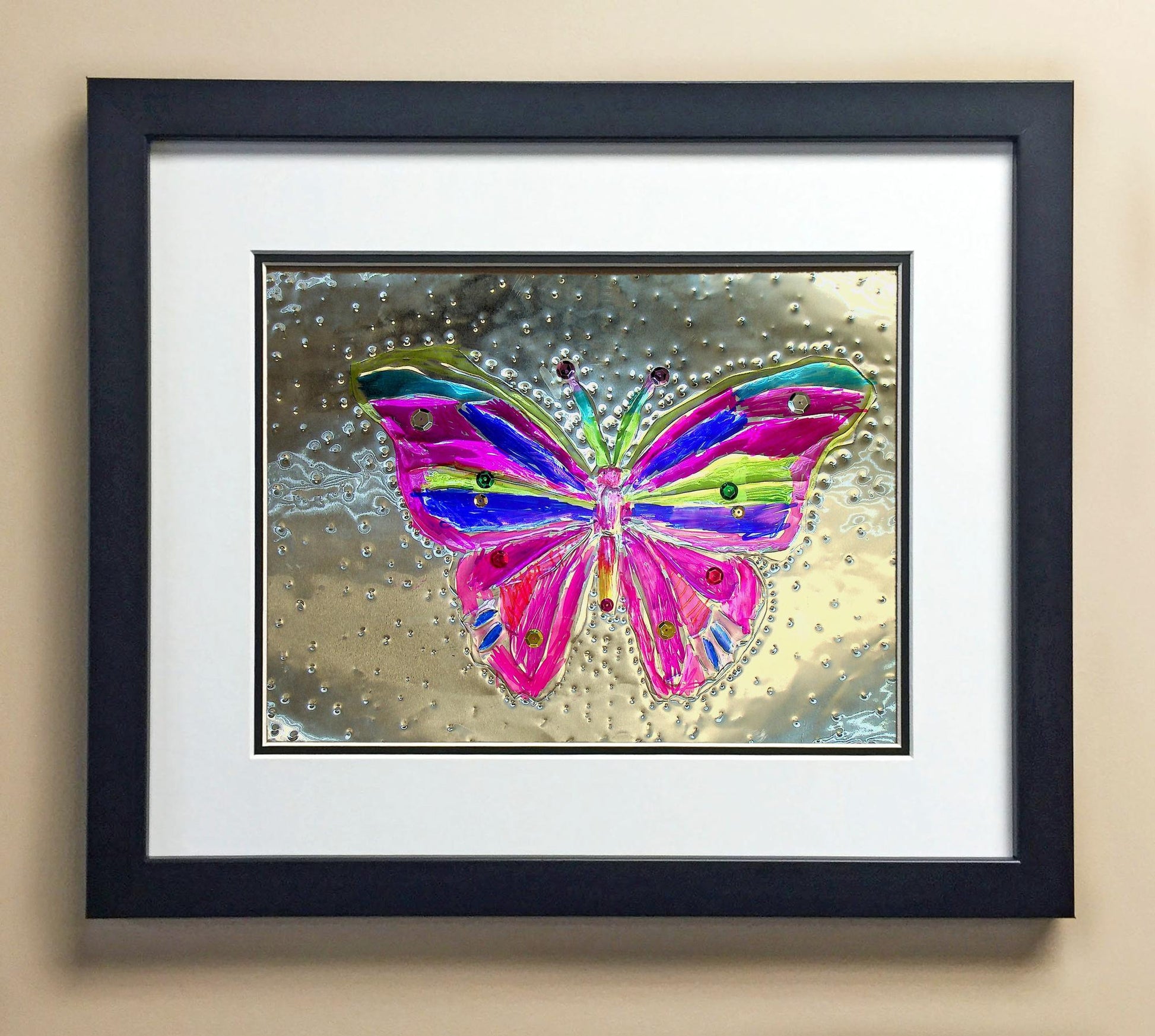 Included with the purchase is the Students Artwork, Frame, double matboard, shatter proof plexiglass, and a ready to hang backerboard with turnbuttons