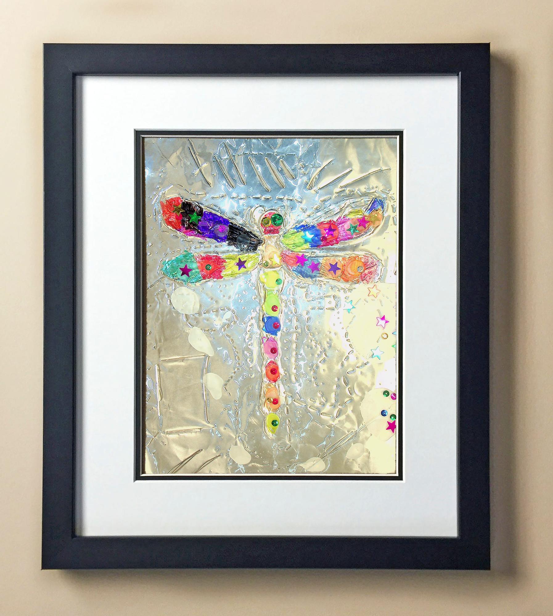 Included with the purchase is the Students Artwork, Frame, double matboard, shatter proof plexiglass, and a ready to hang backerboard with turnbuttons