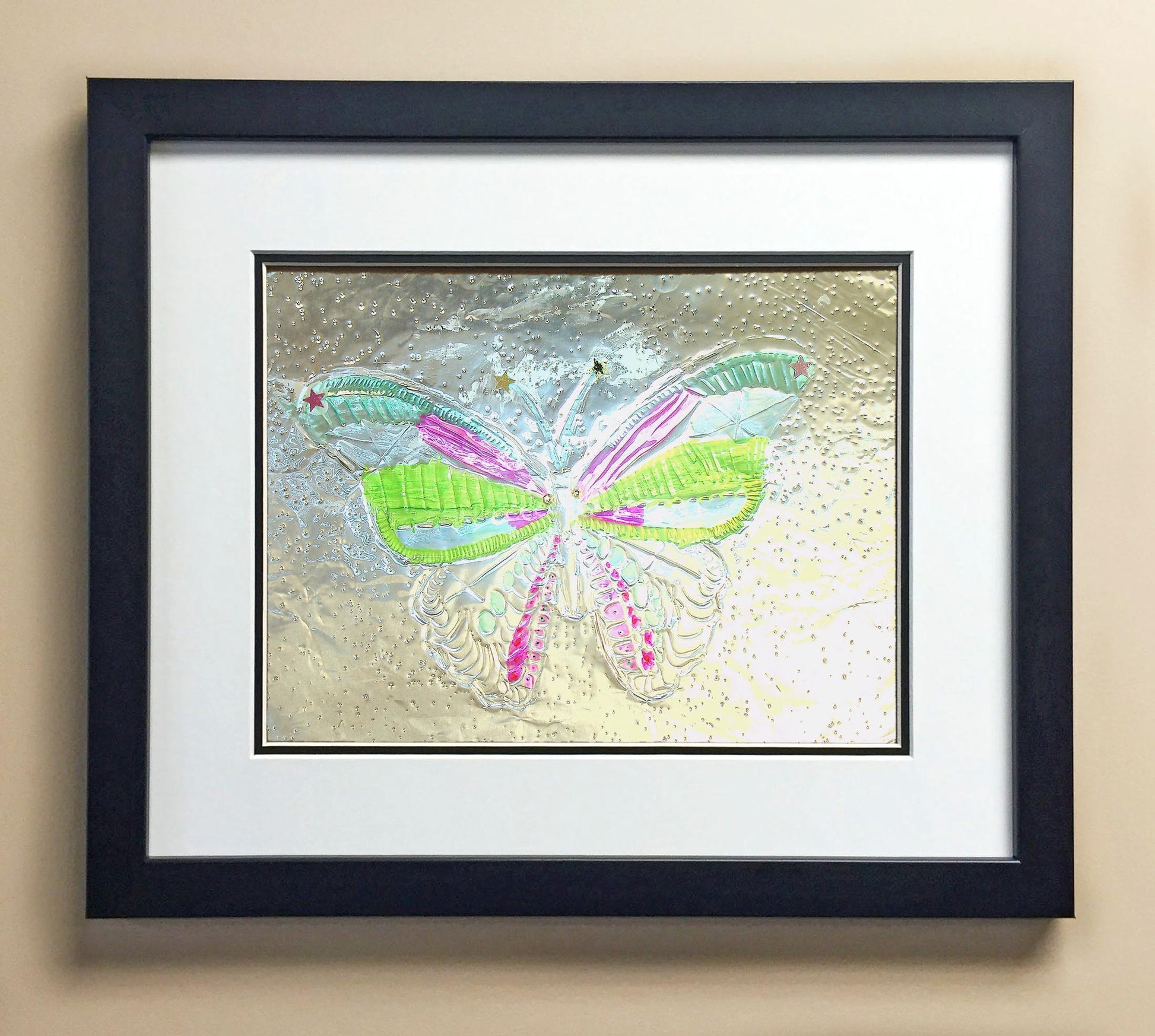Included with the purchase is the Students Artwork, Frame, double matboard, shatter proof plexiglass, and a ready to hang backerboard with turnbuttons