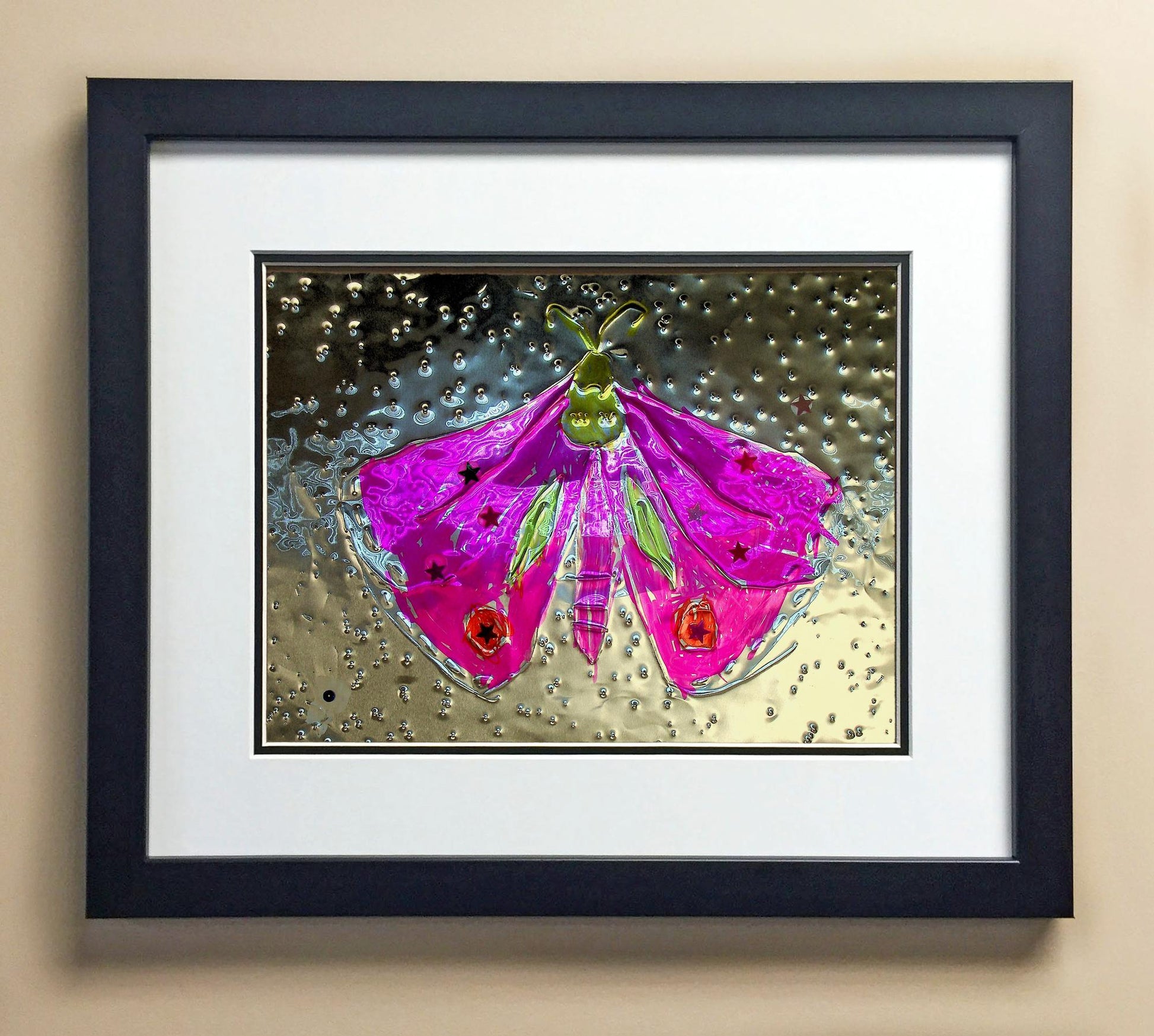 Included with the purchase is the Students Artwork, Frame, double matboard, shatter proof plexiglass, and a ready to hang backerboard with turnbuttons
